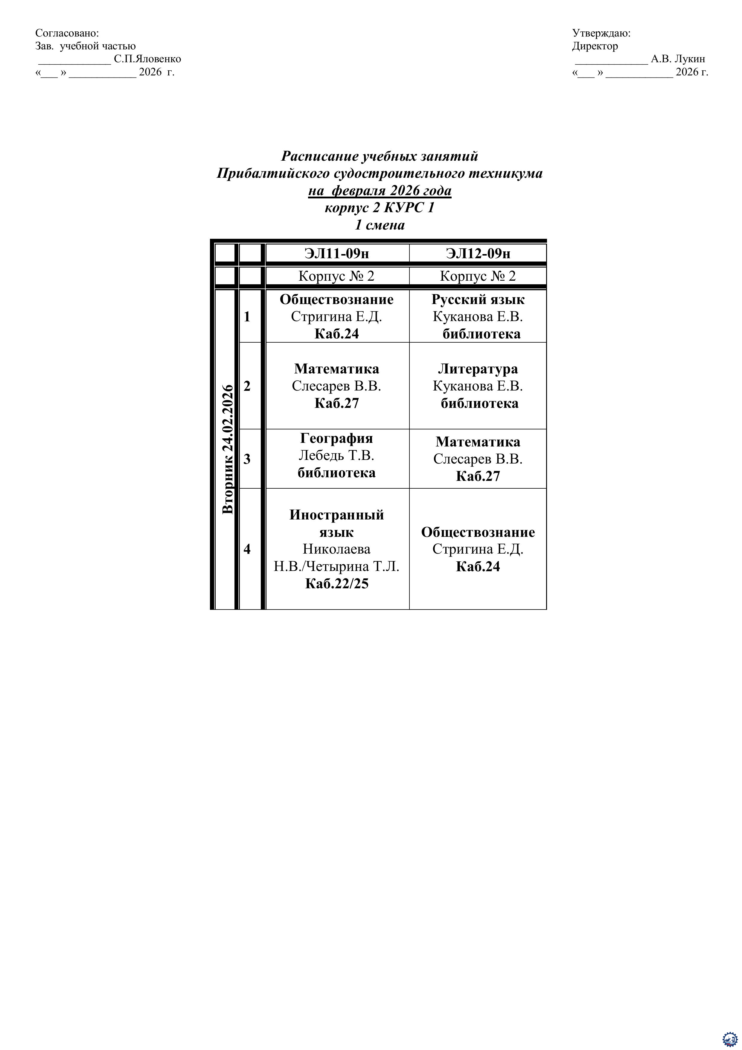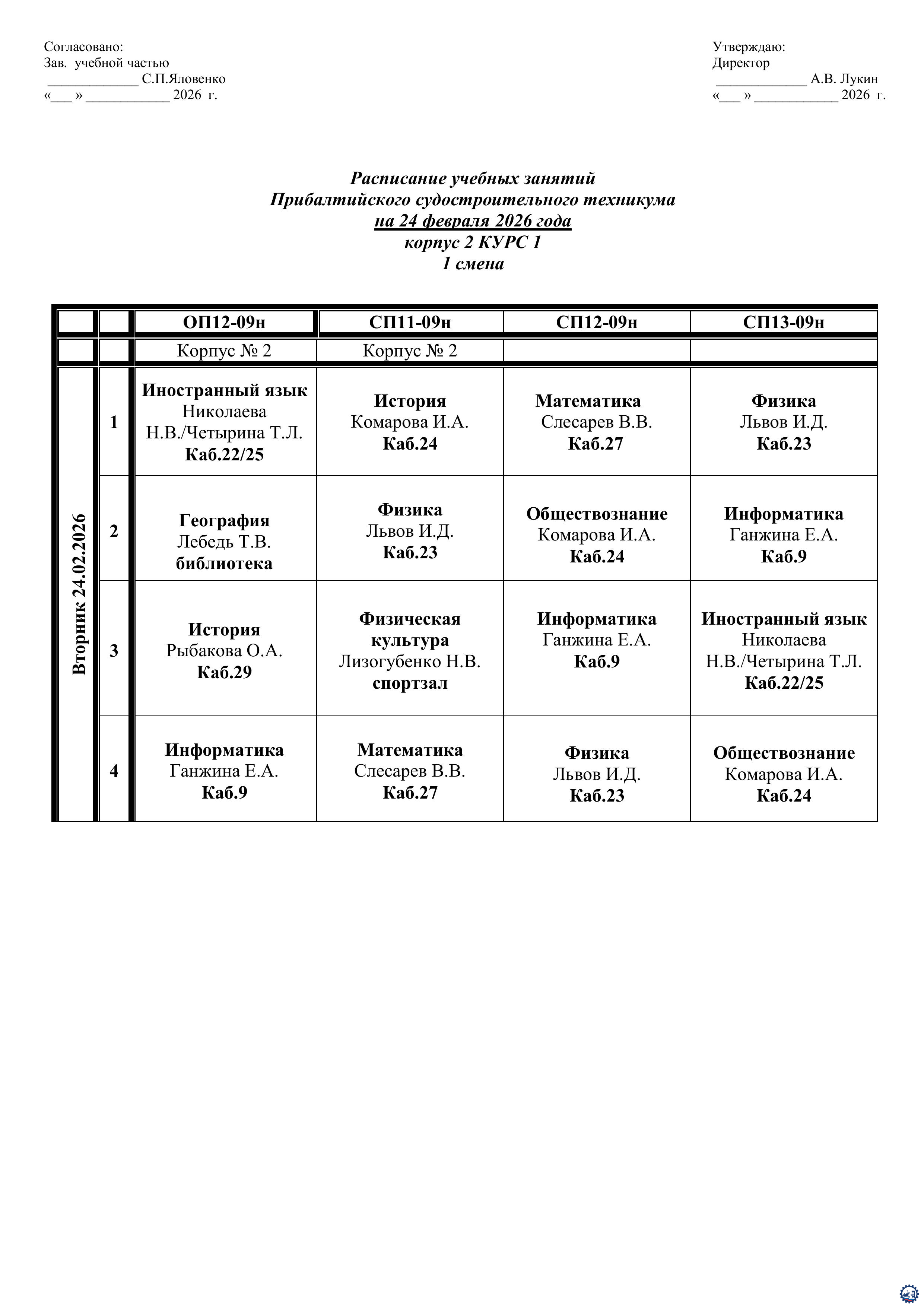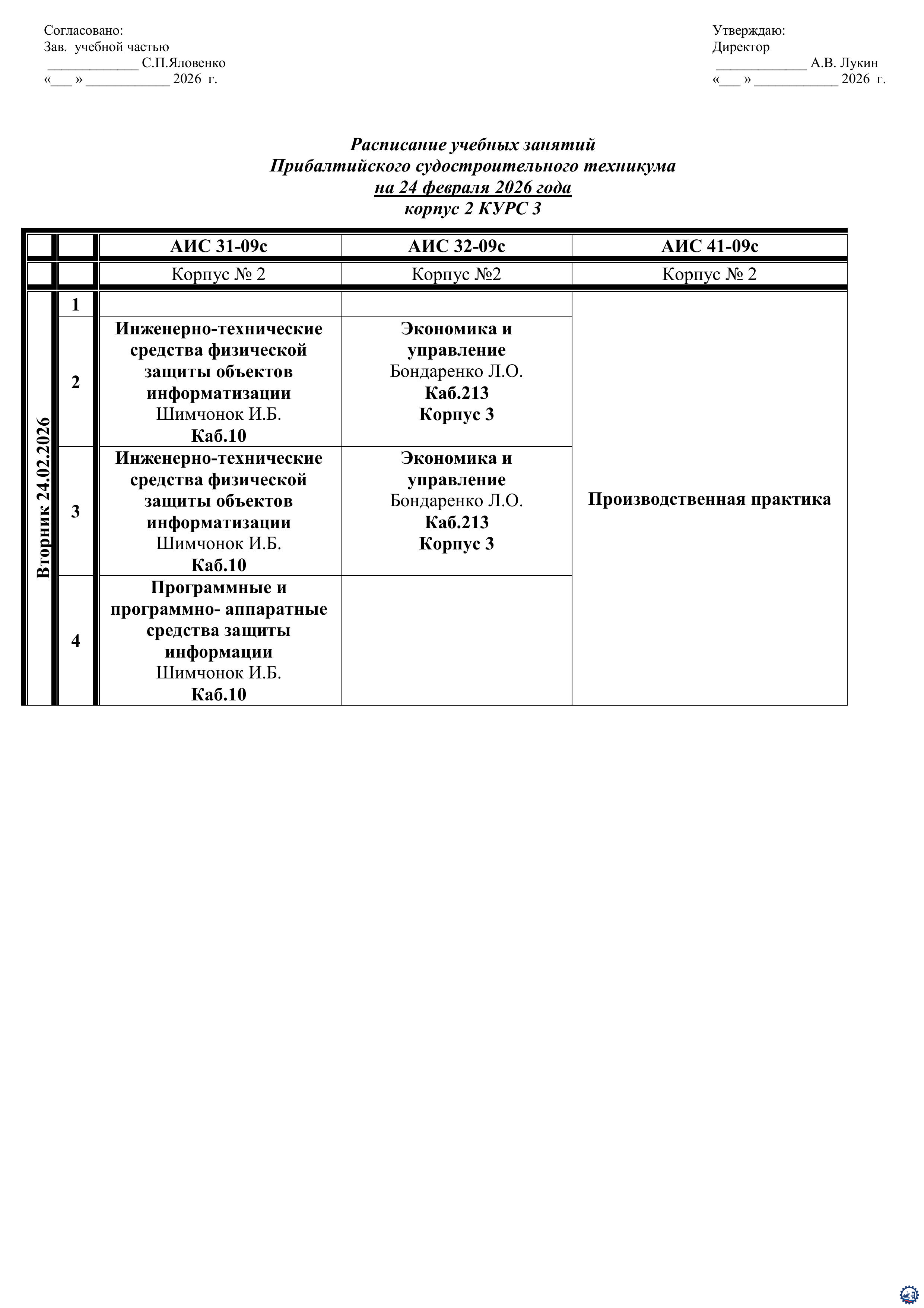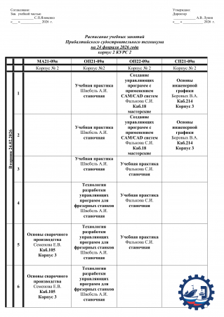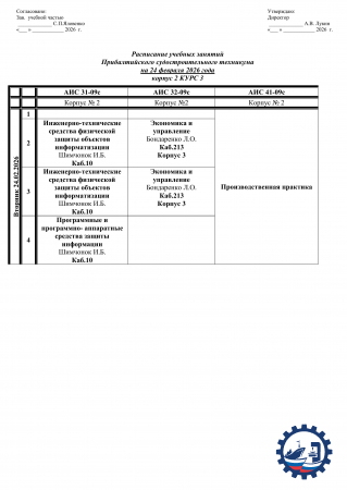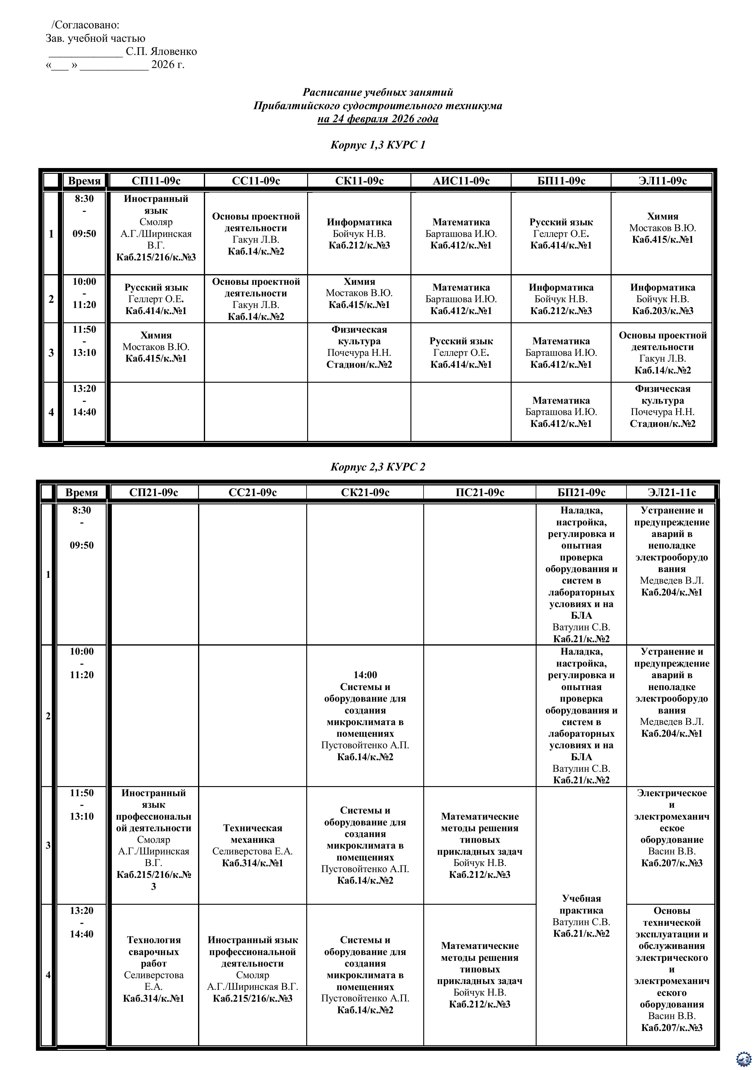 📆 Расписание занятий на 24.02.26 Опубликовал: Manager, 20-02-2026, 19:12, Расписание занятий / Расписание занятий (очка), 693, 0 0 1 2 3 4 5