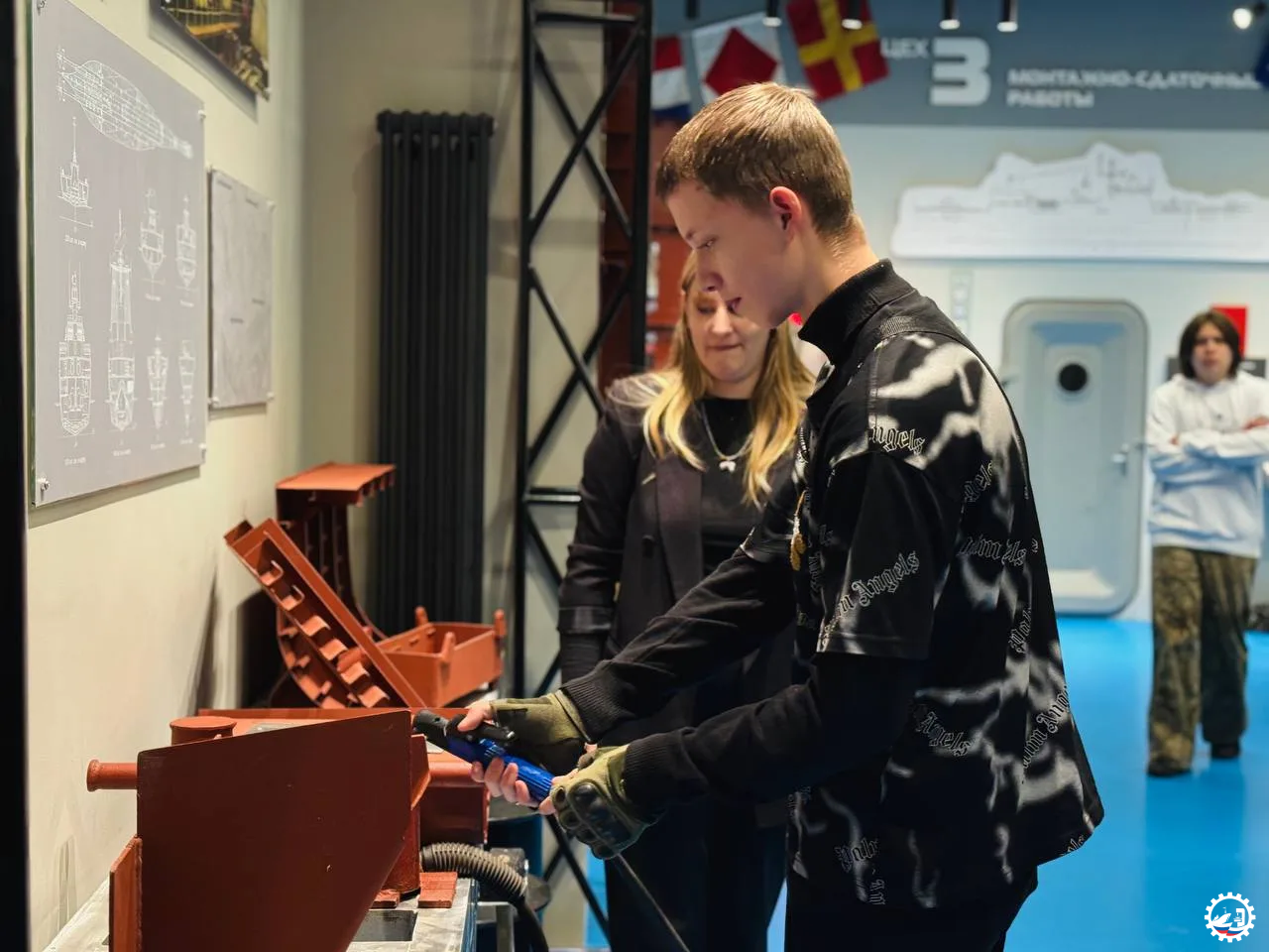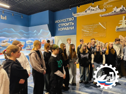 Они познакомились с историей судостроения — от эпохи Петра I до наших дней — и узнали множество интересных фактов. Далее участники экскурсии осмотрели реальные суда, прогулявшись по территории завода.