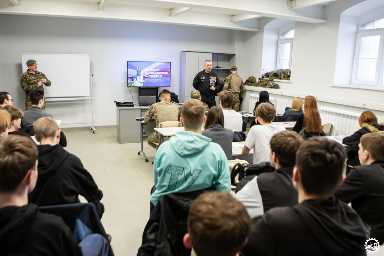 Сотрудники молодежного центра «Патриот» совместно с ветеранами боевых действий и участником Специальной военной операции провели  Всероссийский урок памяти «Возвращение в родную гавань» в Прибалтийском судостроительном техникуме. Это была не просто лекция, а возможность для молодежи прикоснуться к истории Крымской весны – тем судьбоносным событиям февраля-марта 2014 года.