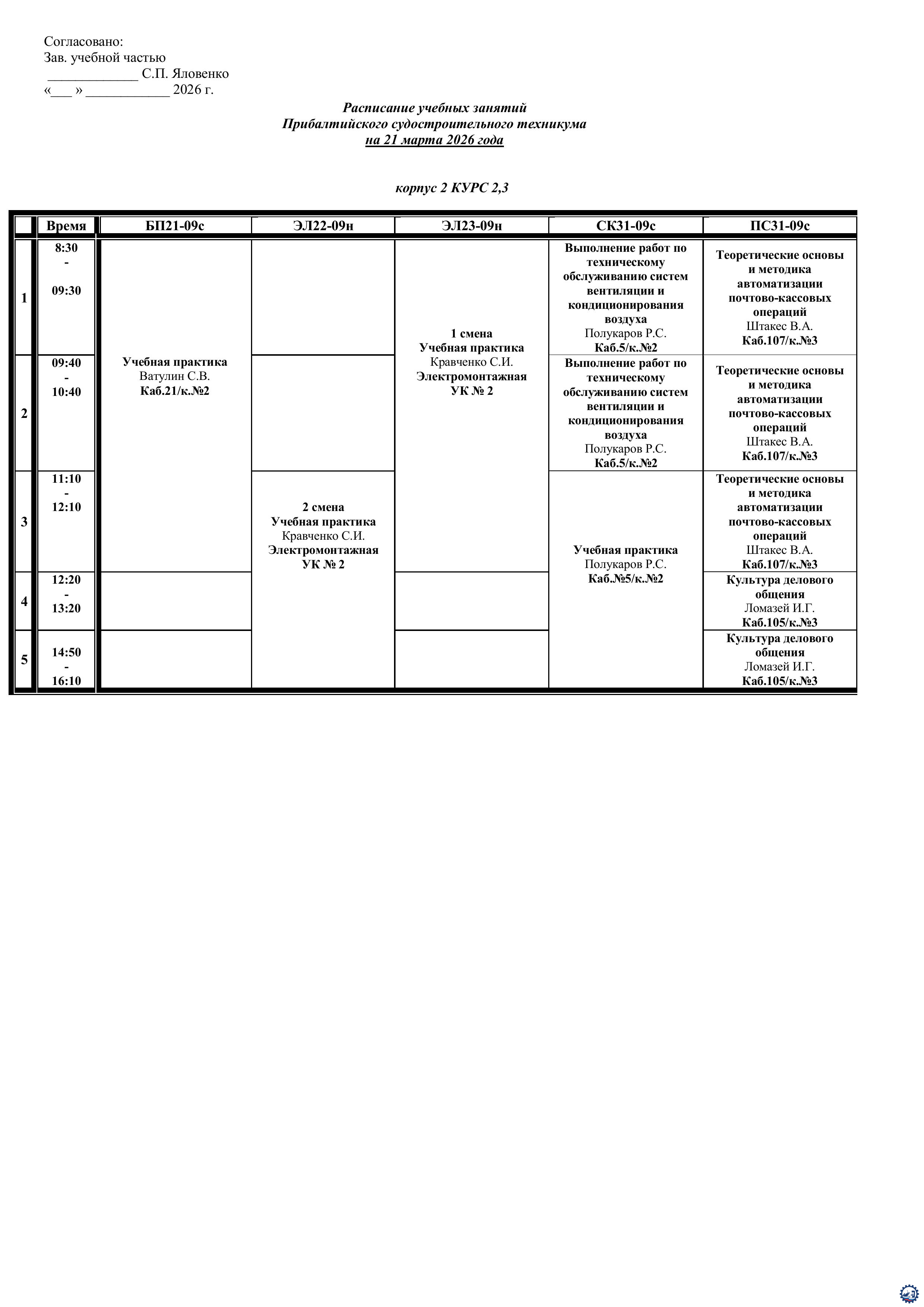 🌱 Расписание занятий на 21.03.26 Опубликовал: Manager, Вчера, 14:08, Расписание занятий / Расписание занятий (очка), 37, 0 0 1 2 3 4 5