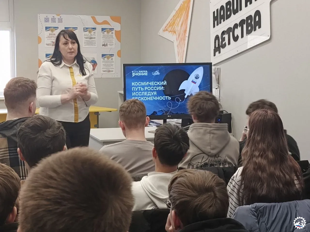 12 апреля День космонавтики В преддверии Дня космонавтики советник директора провела для студентов первых курсов лекцию «Космический путь России: исследуя бесконечность» в формате классного часа, организованную федеральным государственным бюджетным учреждением «Российский детско-юношеский центр» и Общероссийской общественно-государственной просветительской организацией «Российское общество Знание». Для просмотра студентам был рекомендован художественный фильм «Гагарин.Первый в космосе». Итогом разговора стало искреннее понимание того, что страница нашей истории покорения космического пространства является героической. Это наша общая национальная, народная гордость. Мы гордились и будем гордиться. Мы были первыми! Мы будем первыми! Гагаринское «Поехали — это наше! #ПутьВКосмос #НавигаторыДетства #НавигаторыДетства39 #Росдетцентр #ДвижениеПервых