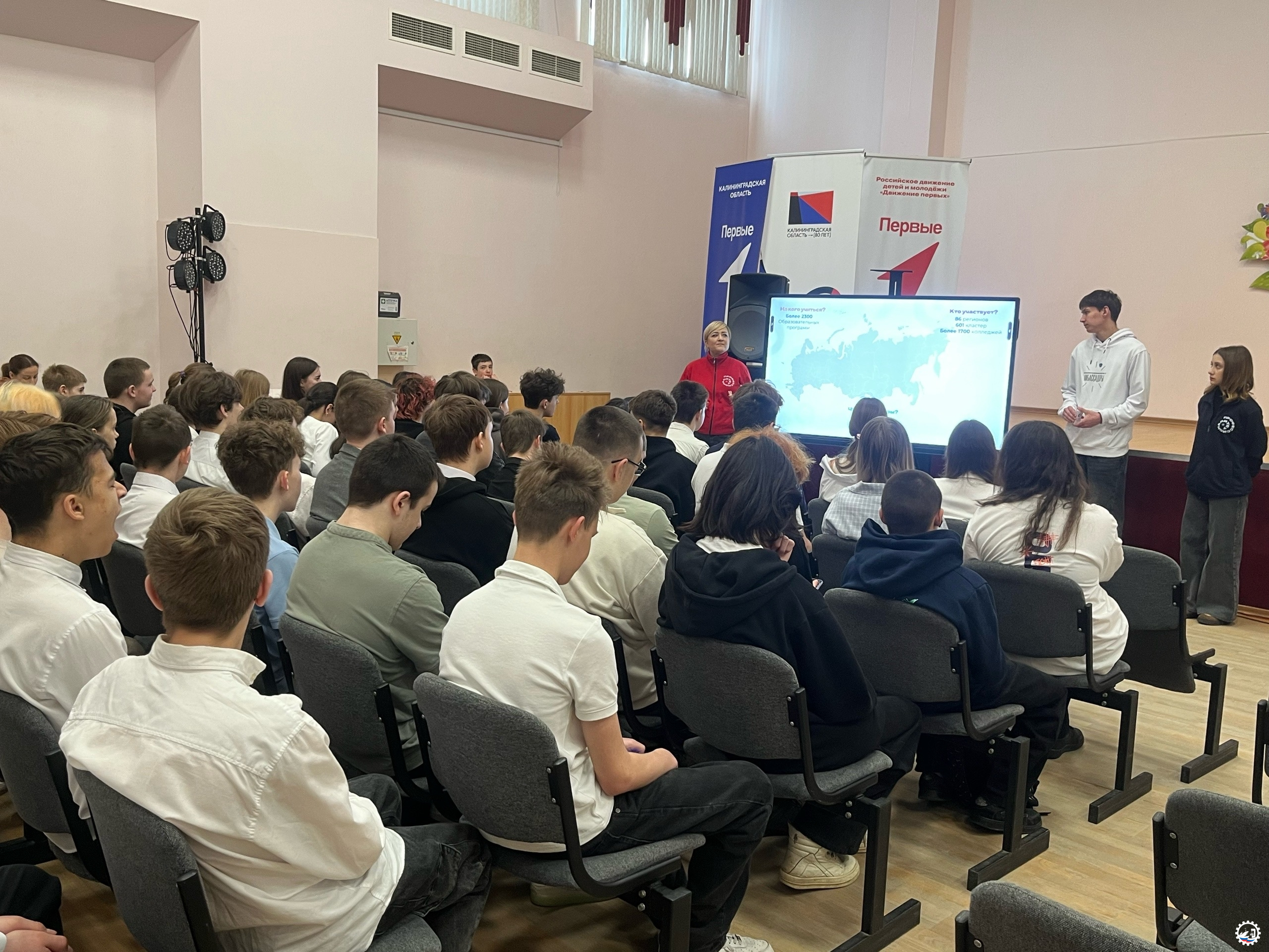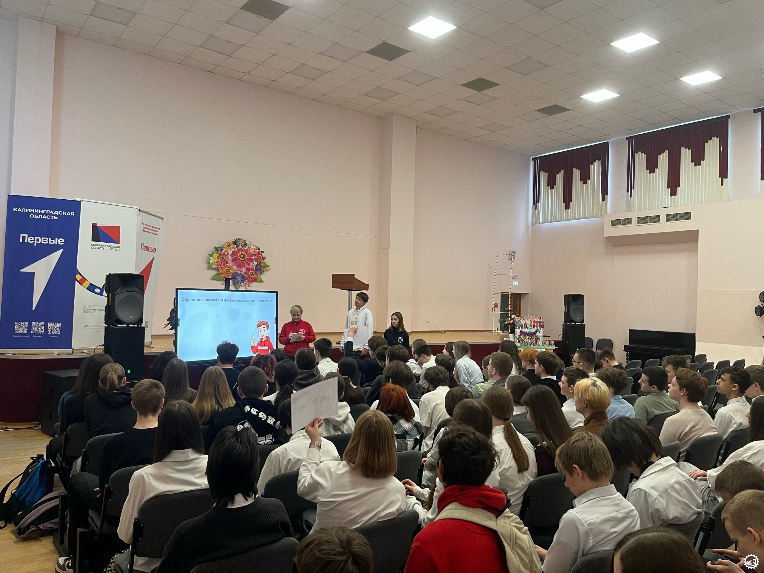 Рано утром команда амбассадоров Прибалтийского судостроительного техникума отправилась в МБОУ СОШ г. Пионерского. Цель визита — рассказать обучающимся 9‑х классов о федеральном проекте «Профессионалитет» национального проекта «Молодёжь и дети» и о том, как он реализуется на базе техникума.