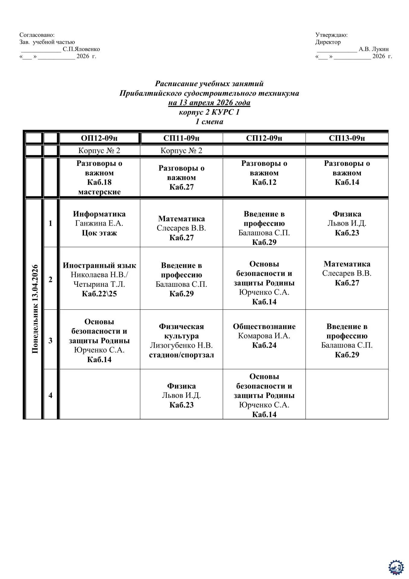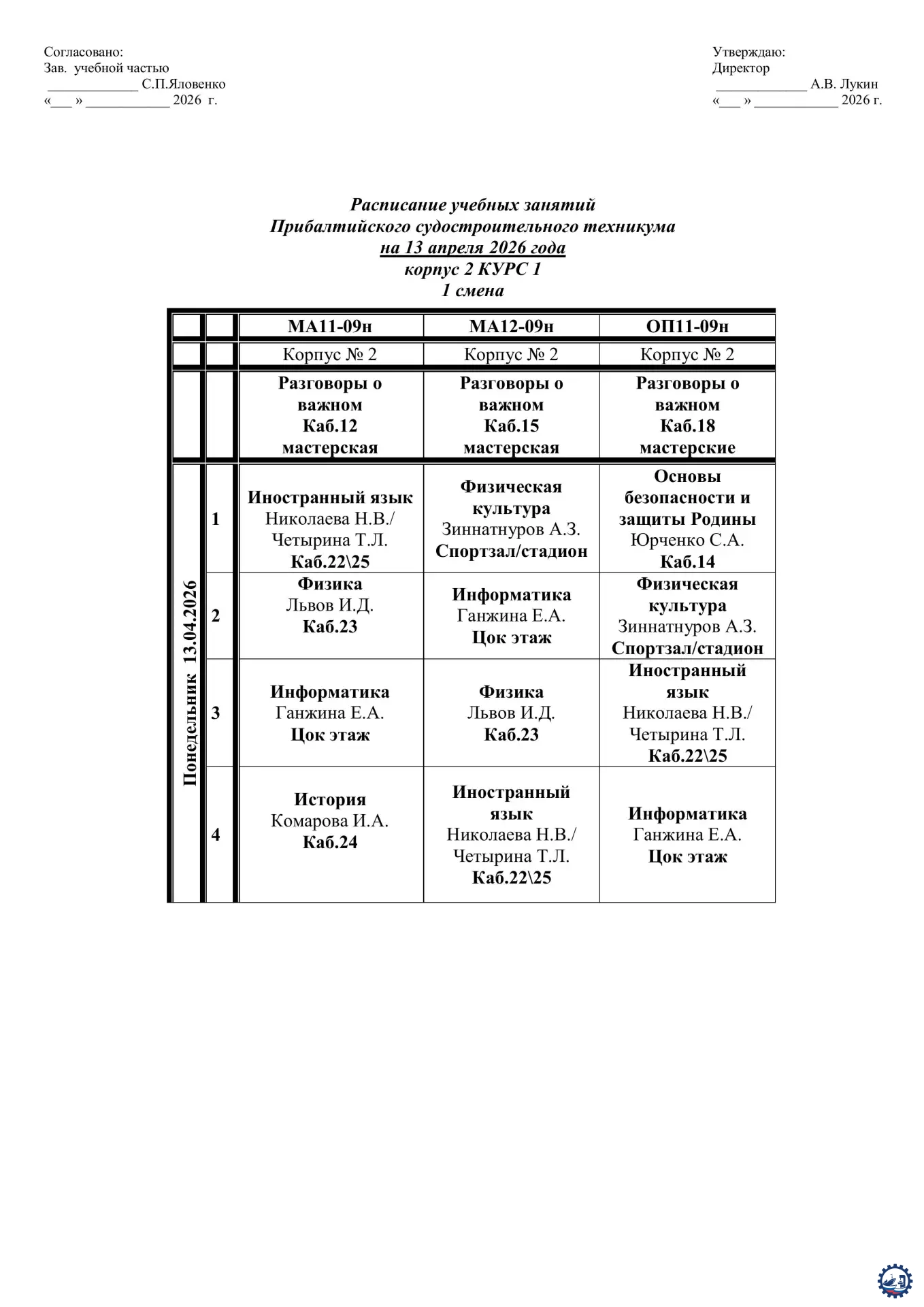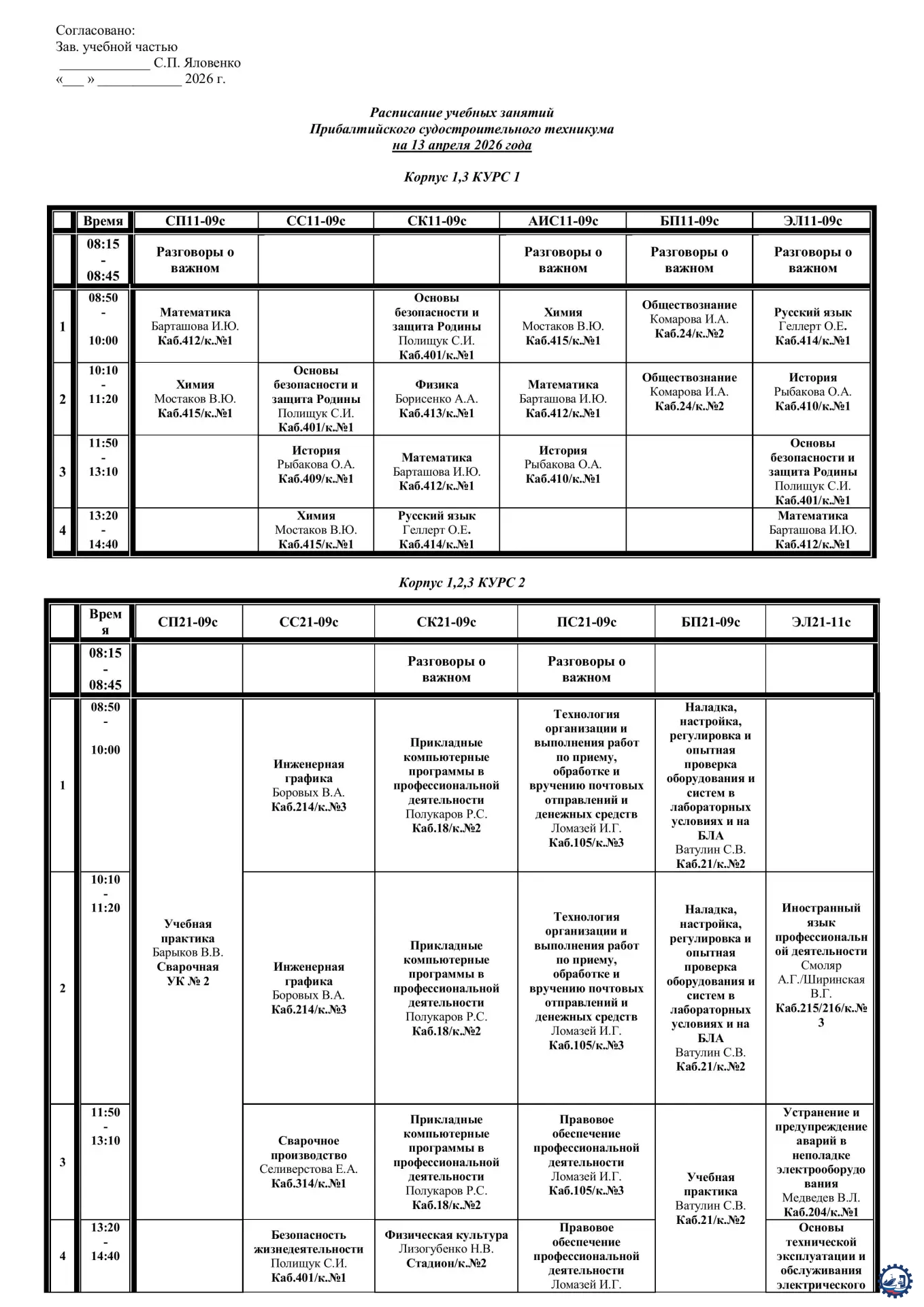 🌱 Расписание занятий на 13.04.26 Опубликовал: ucheba, 10-04-2026, 17:37, Расписание занятий / Расписание занятий (очка), 160, 0 80 1 2 3 4 5