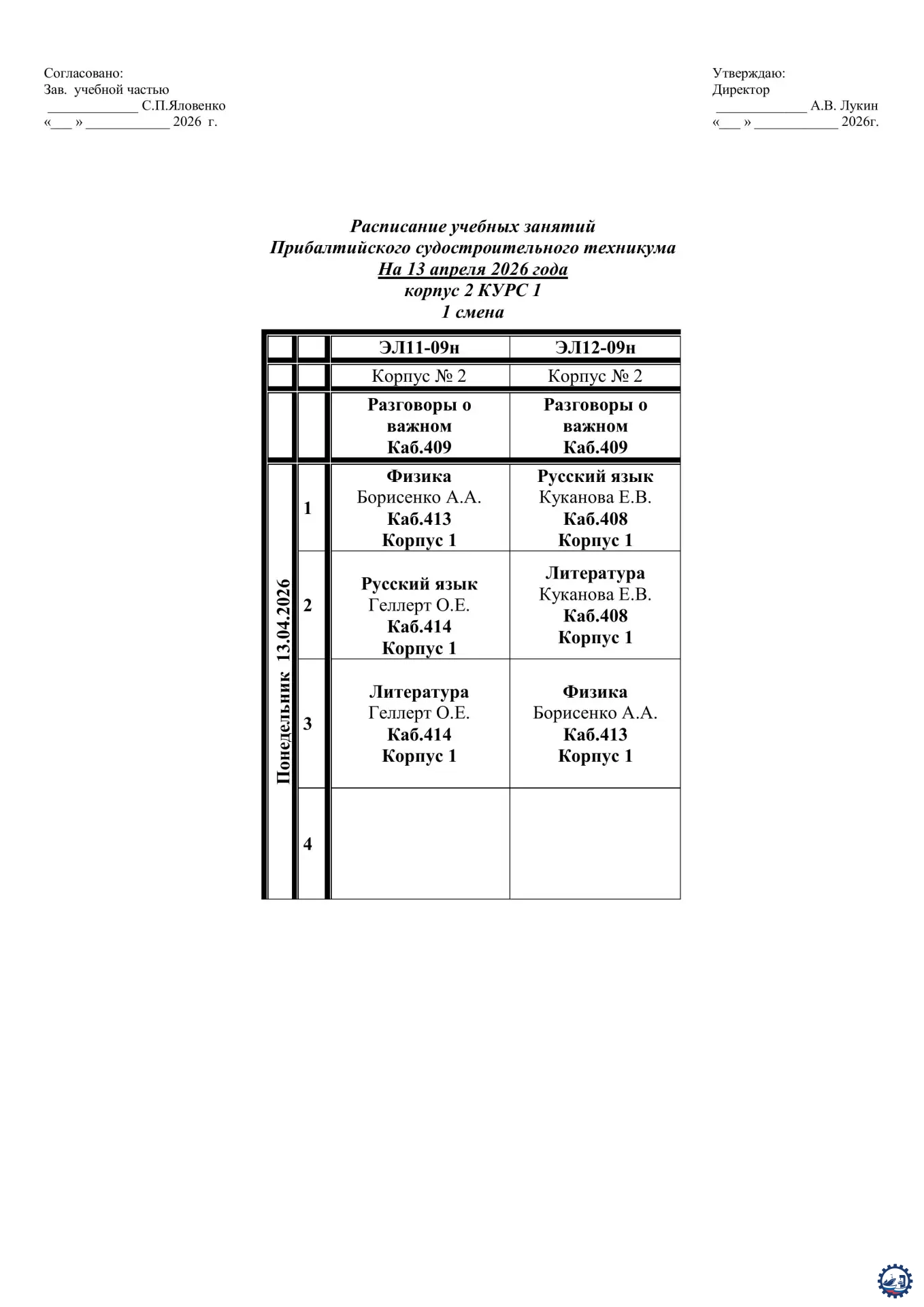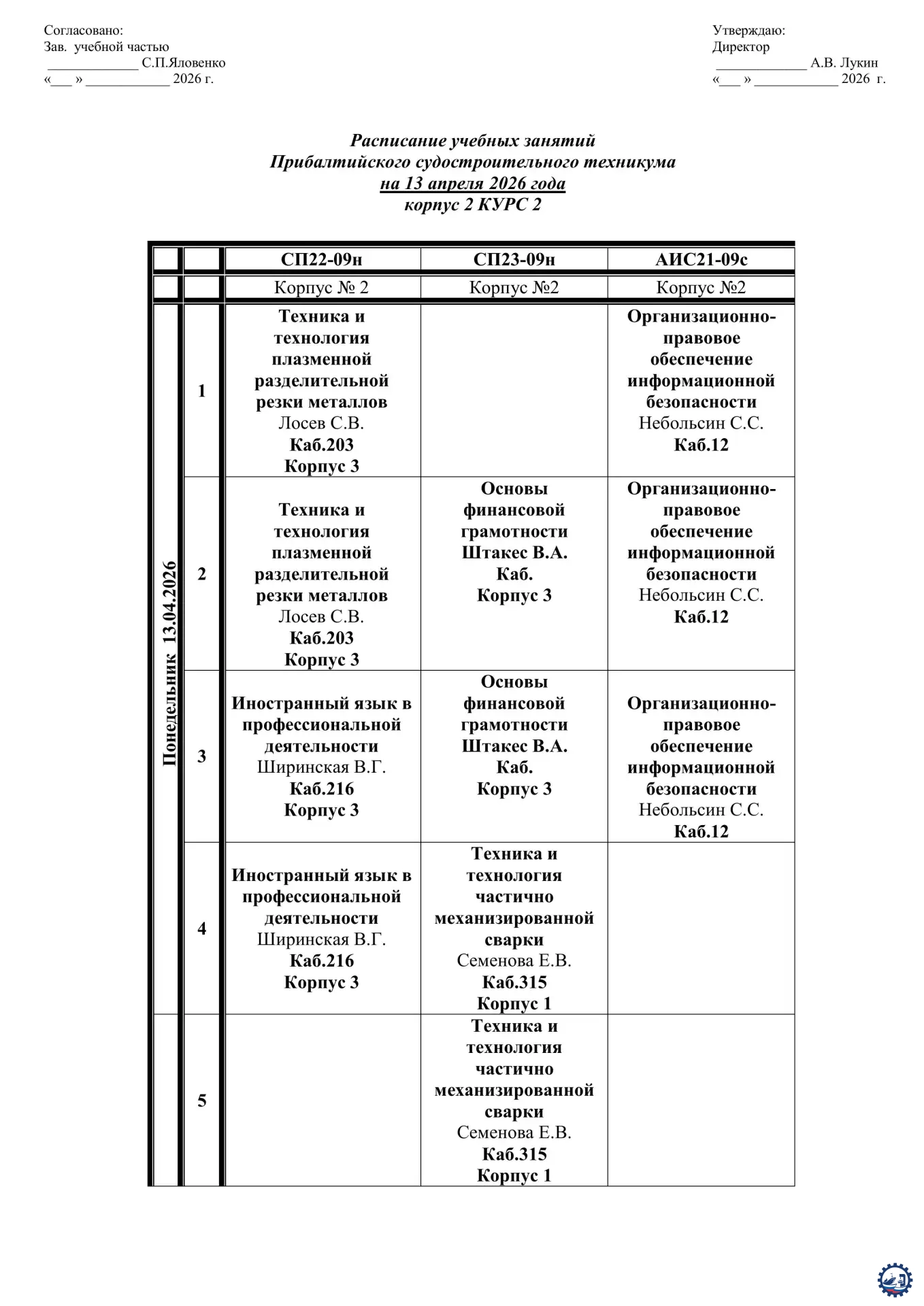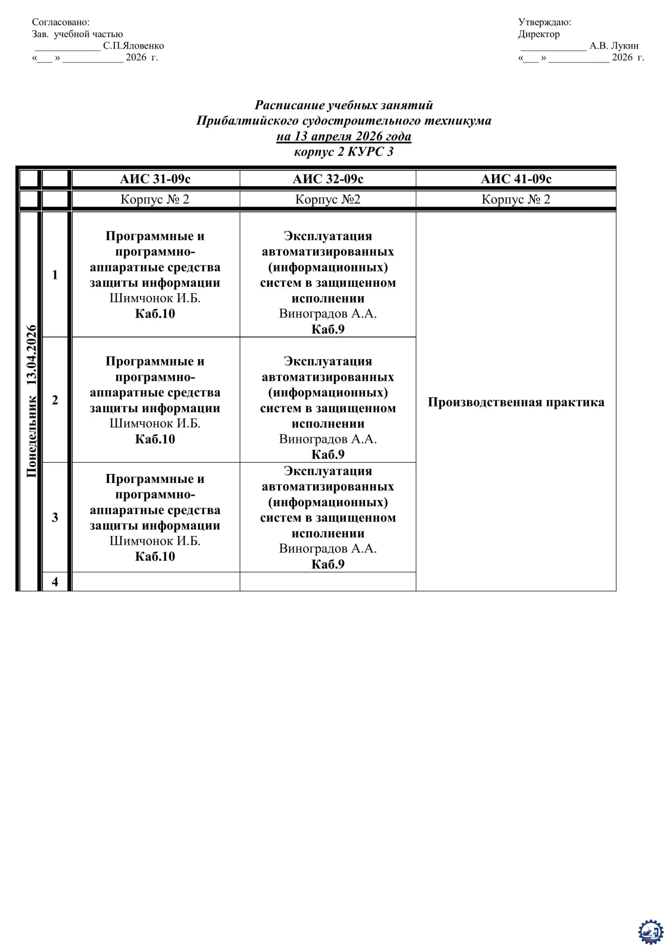 🌱 Расписание занятий на 13.04.26 Опубликовал: ucheba, 10-04-2026, 17:37, Расписание занятий / Расписание занятий (очка), 160, 0 80 1 2 3 4 5
