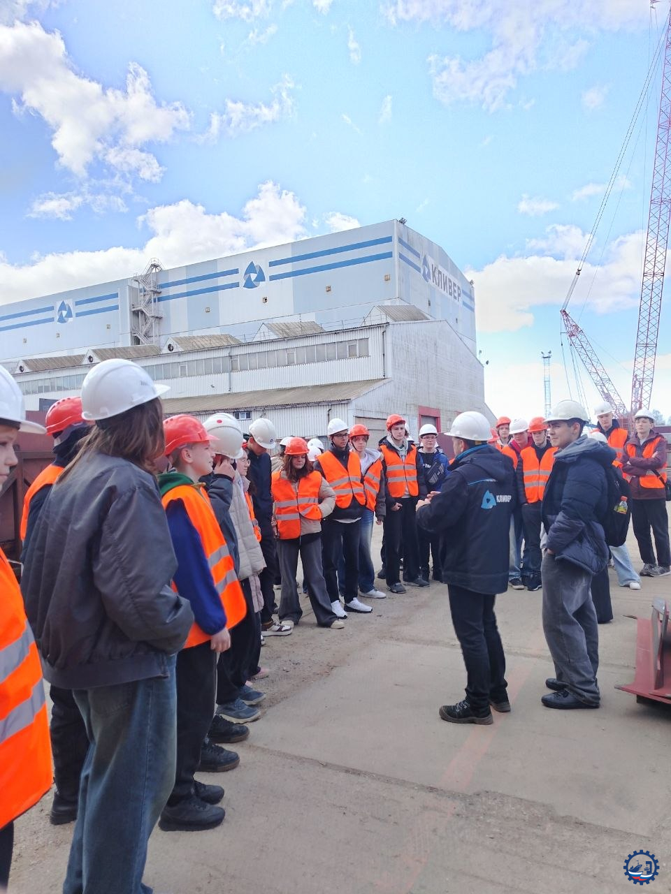 Ребята не только познакомились с предприятием на словах, но и прошлись по просторным цехам предприятия, где своими глазами увидели, как рождаются морские суда и создаются сложные инженерные установки для судостроительной отрасли.