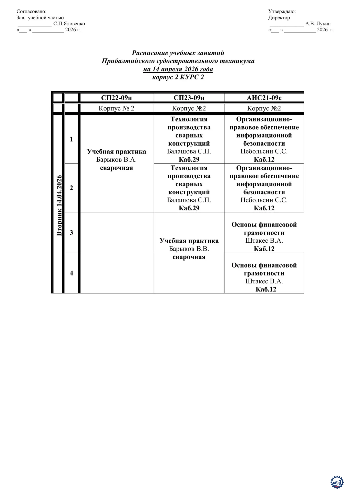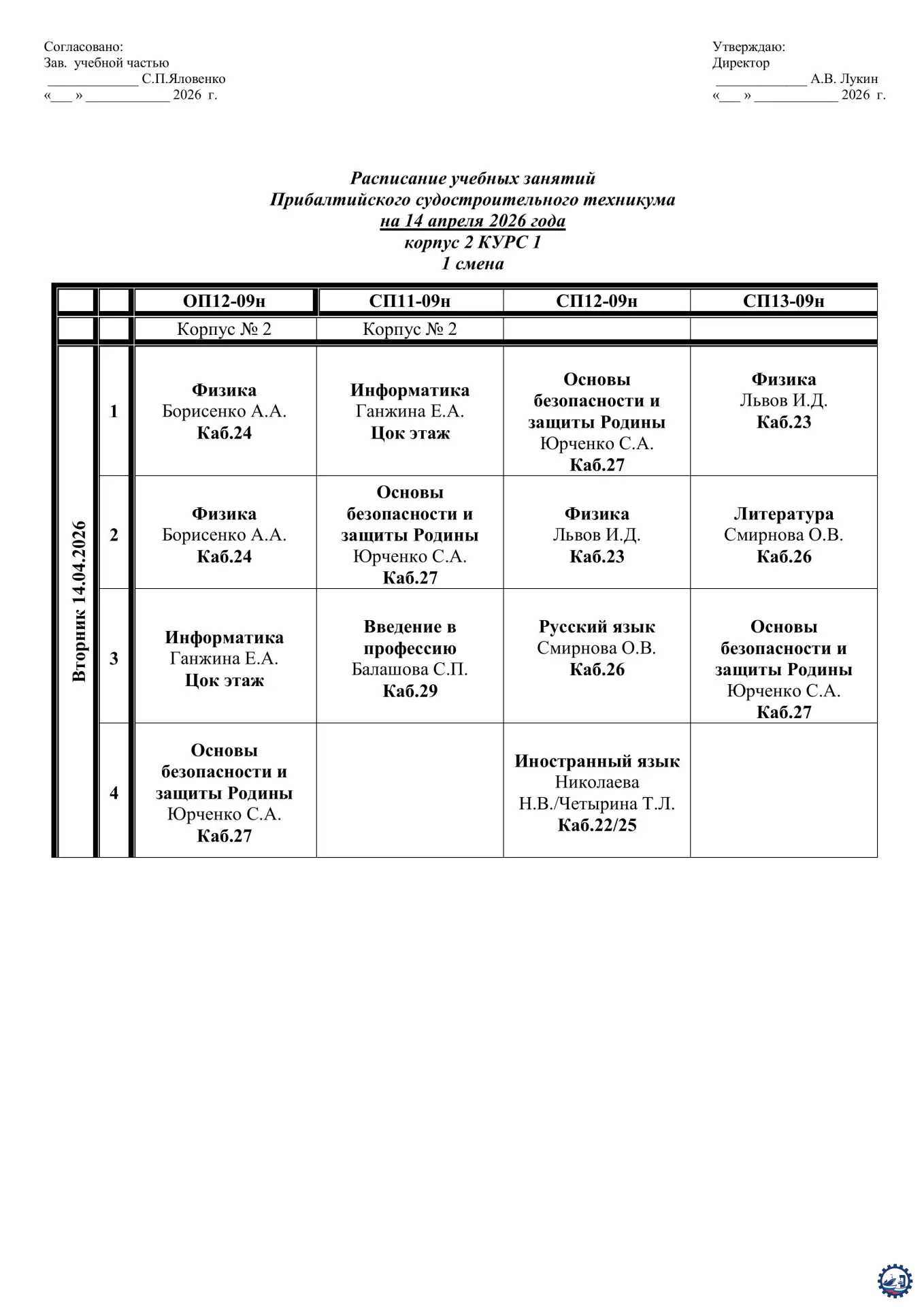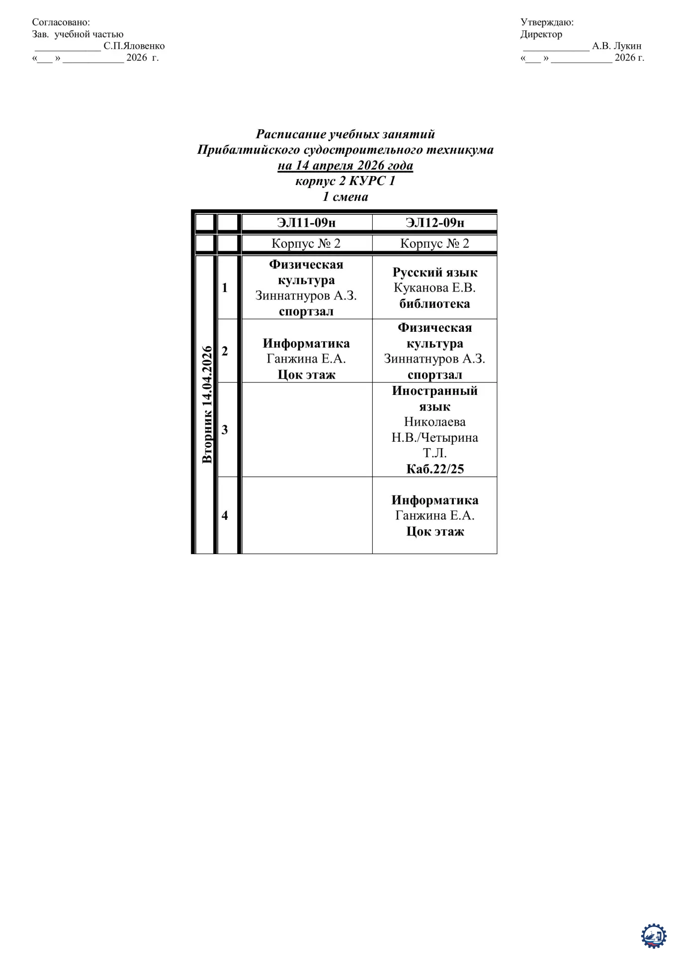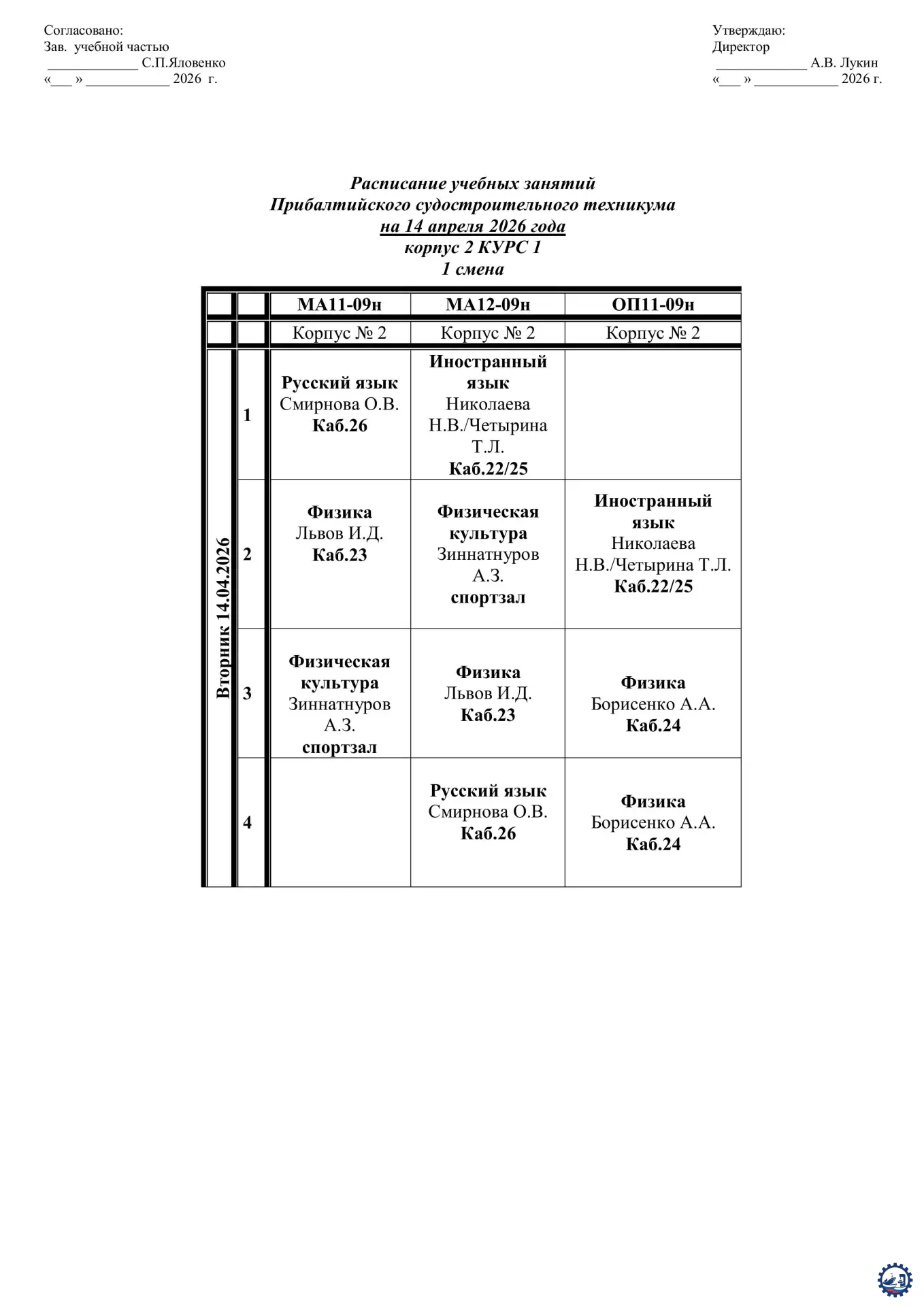🌱 Расписание занятий на 14.04.26 Опубликовал: Manager, 13-04-2026, 14:12, Расписание занятий / Расписание занятий (очка), 193, 0 0 1 2 3 4 5