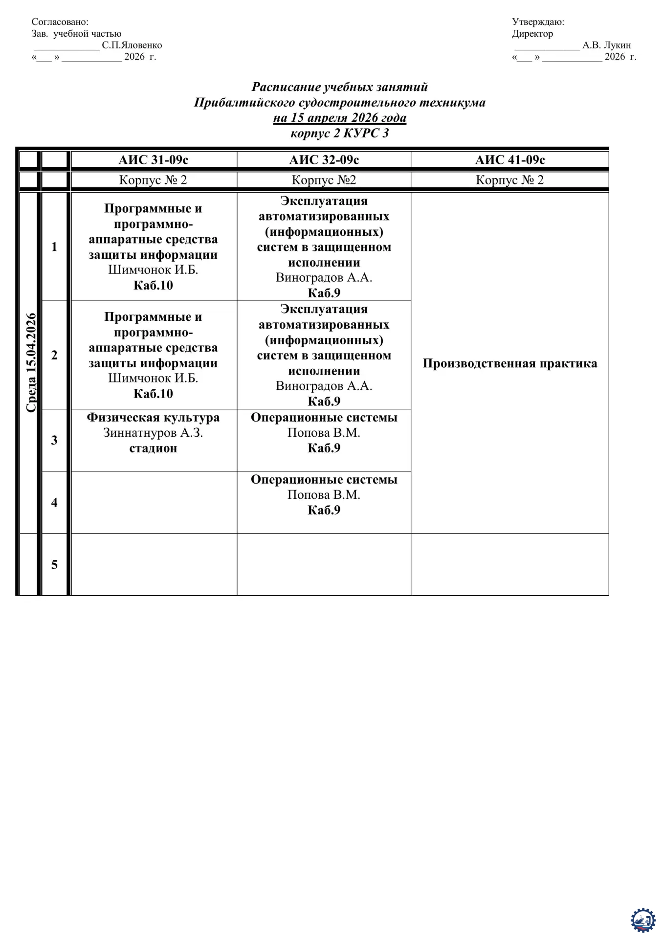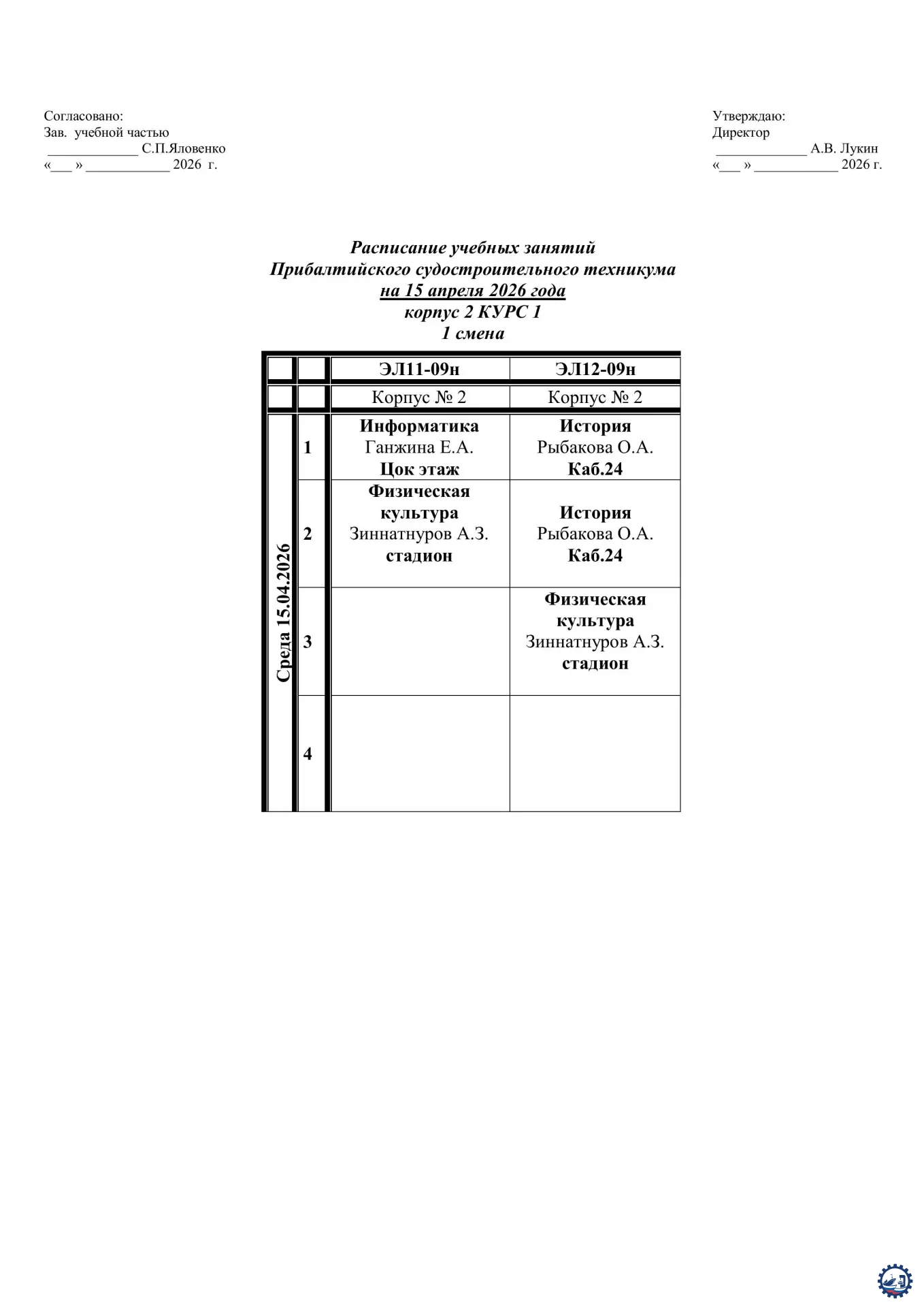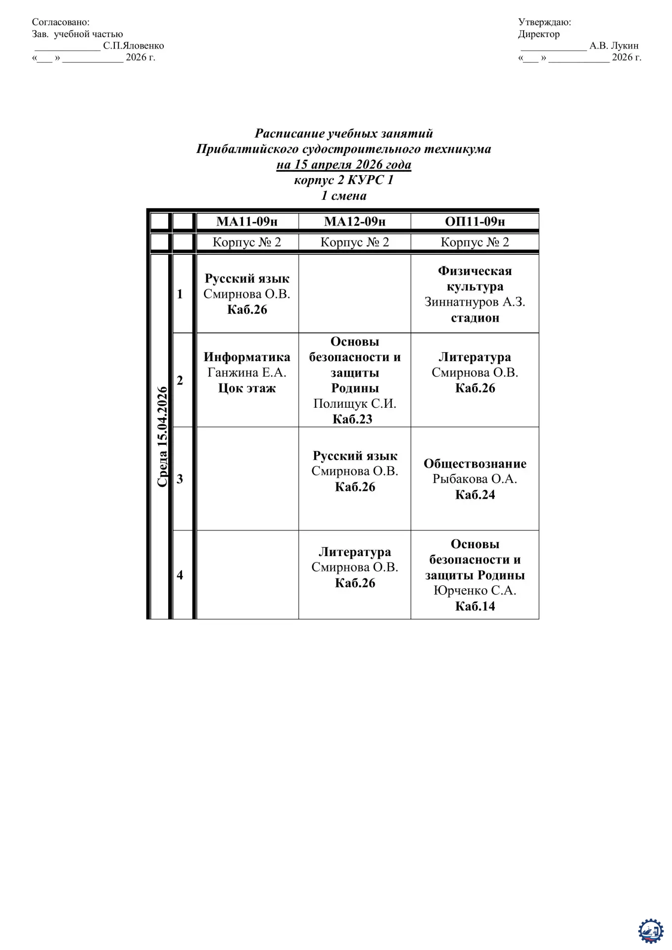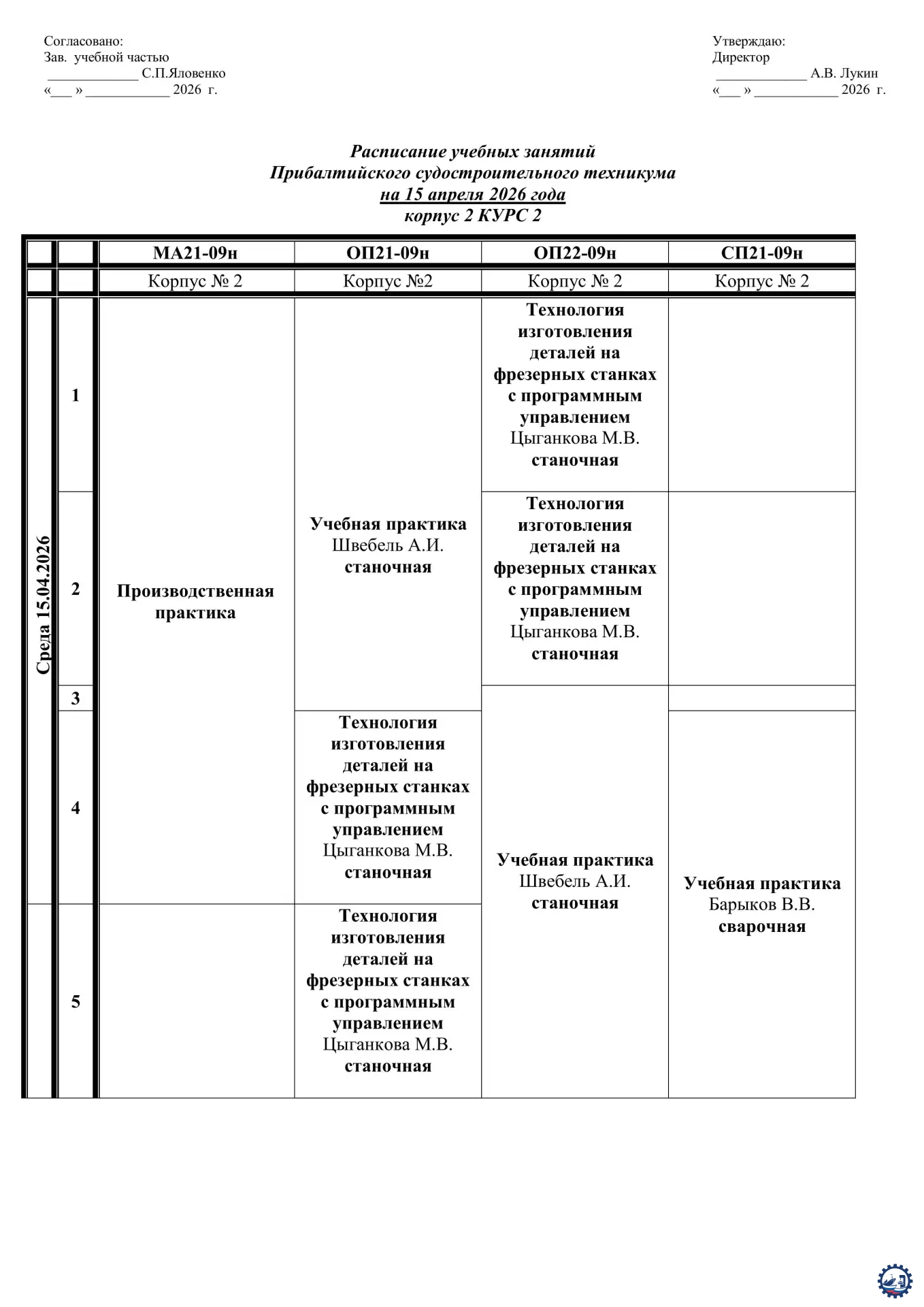 🌱 Расписание занятий на 15.04.26 Опубликовал: Manager, 14-04-2026, 13:24, Расписание занятий / Расписание занятий (очка), 136, 0 0 1 2 3 4 5