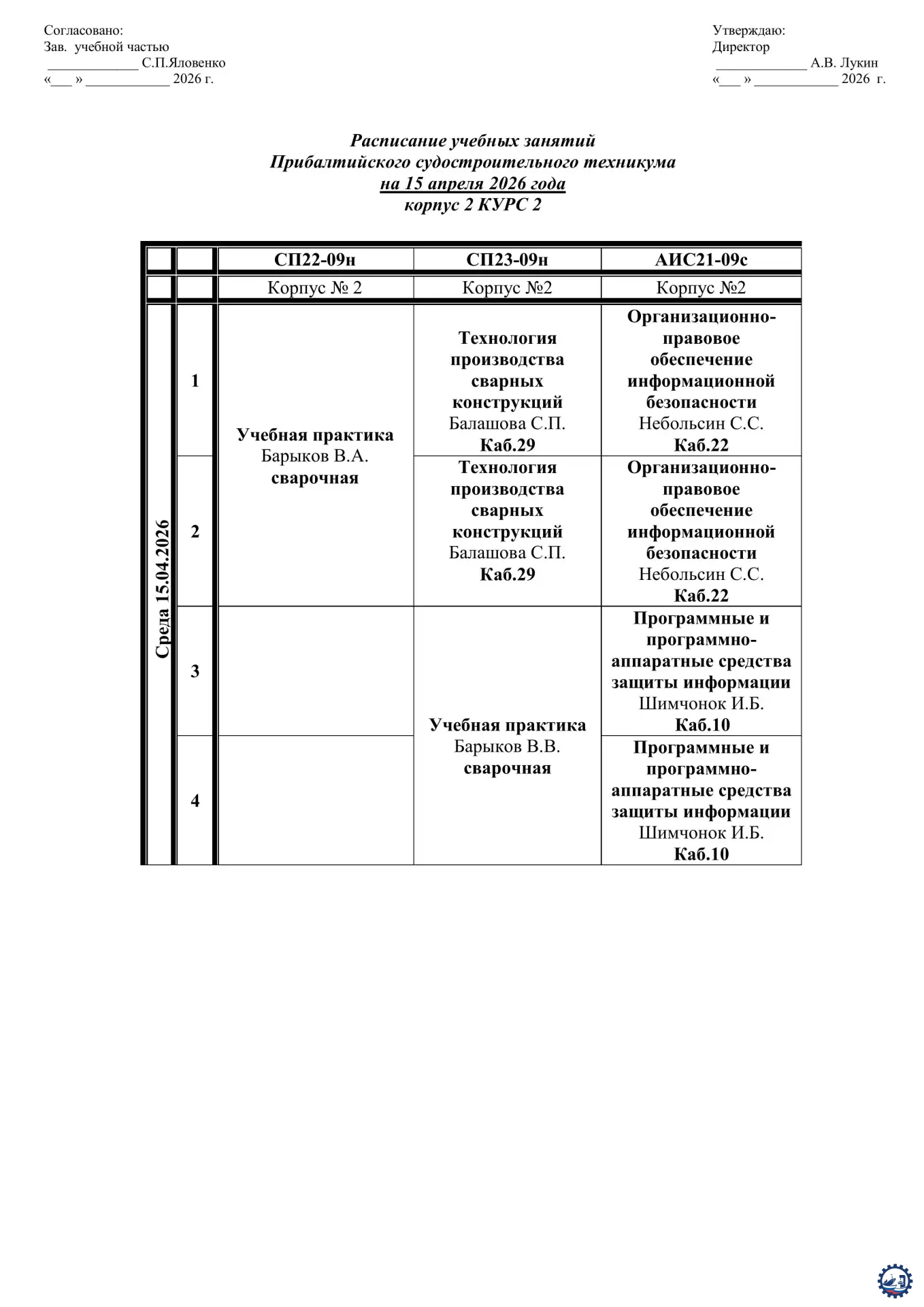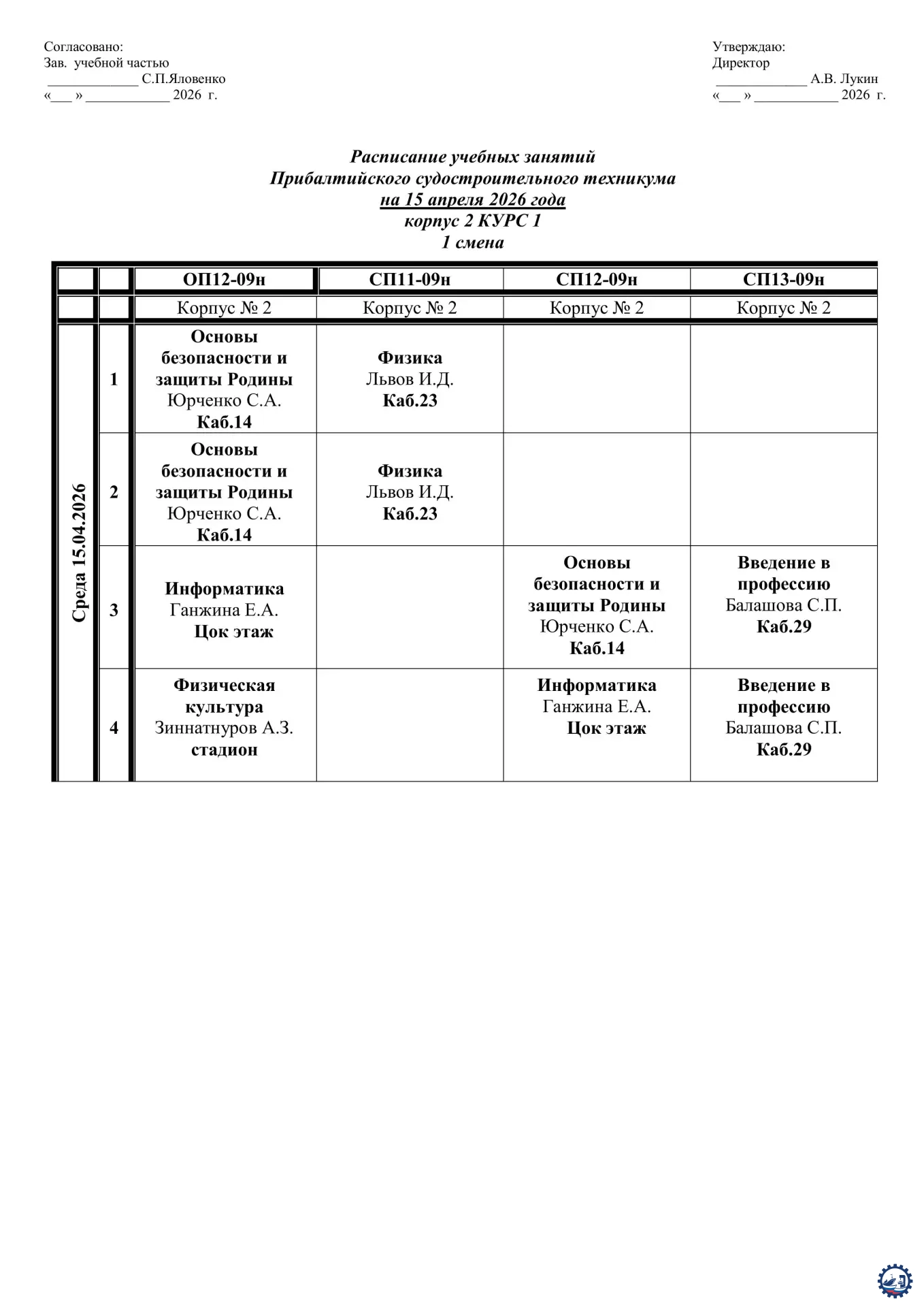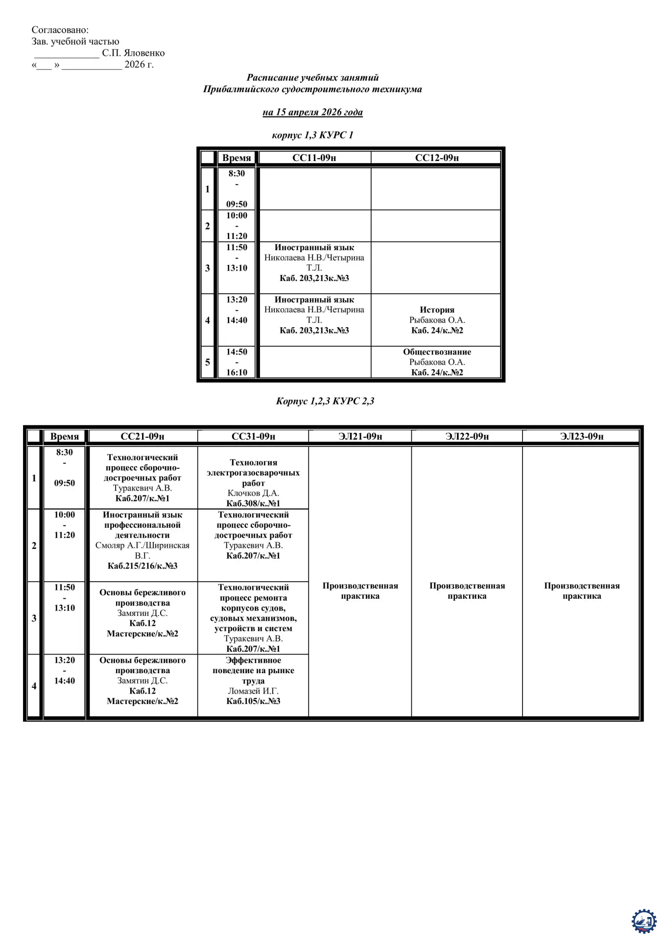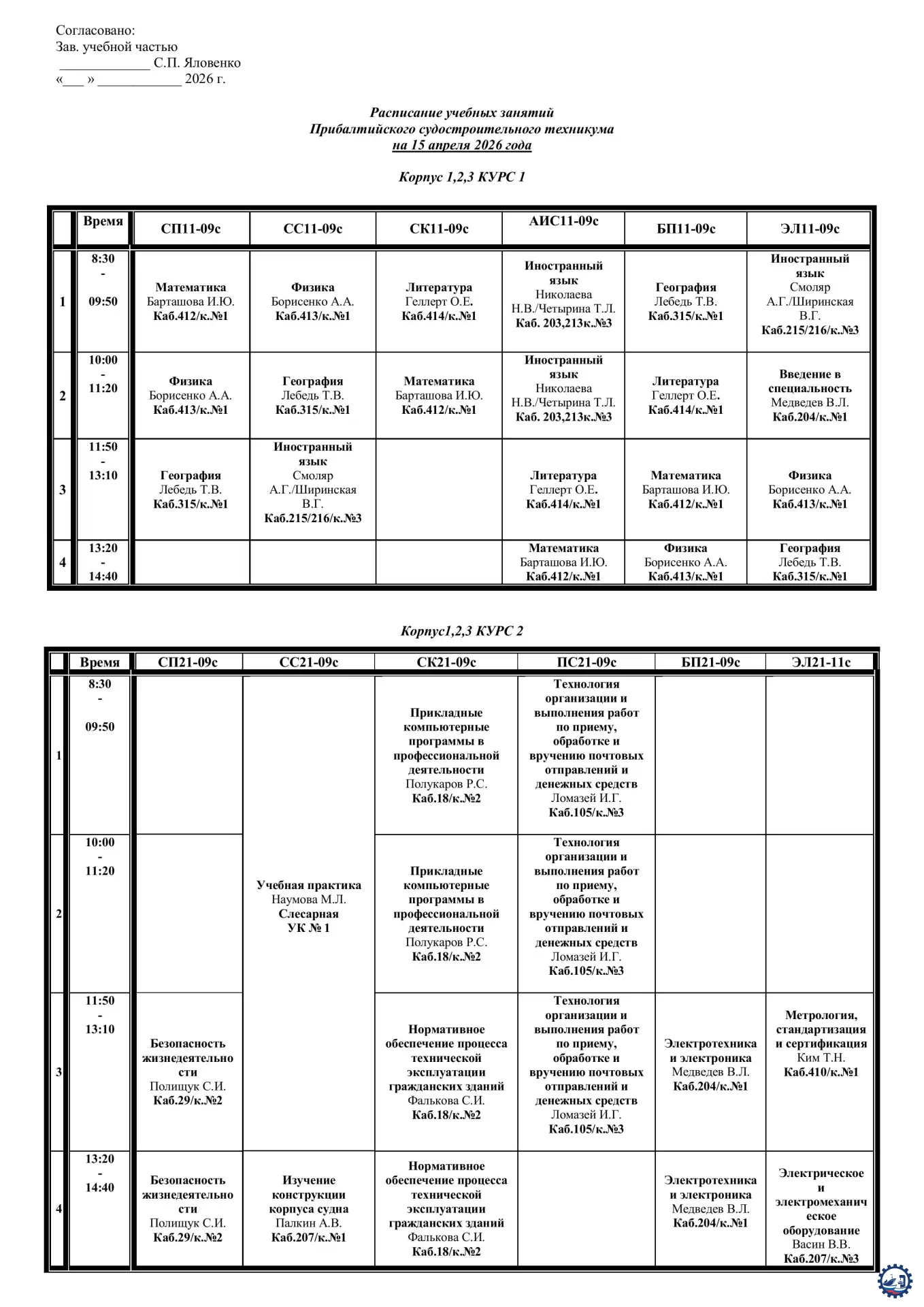 🌱 Расписание занятий на 15.04.26 Опубликовал: Manager, 14-04-2026, 13:24, Расписание занятий / Расписание занятий (очка), 136, 0 0 1 2 3 4 5
