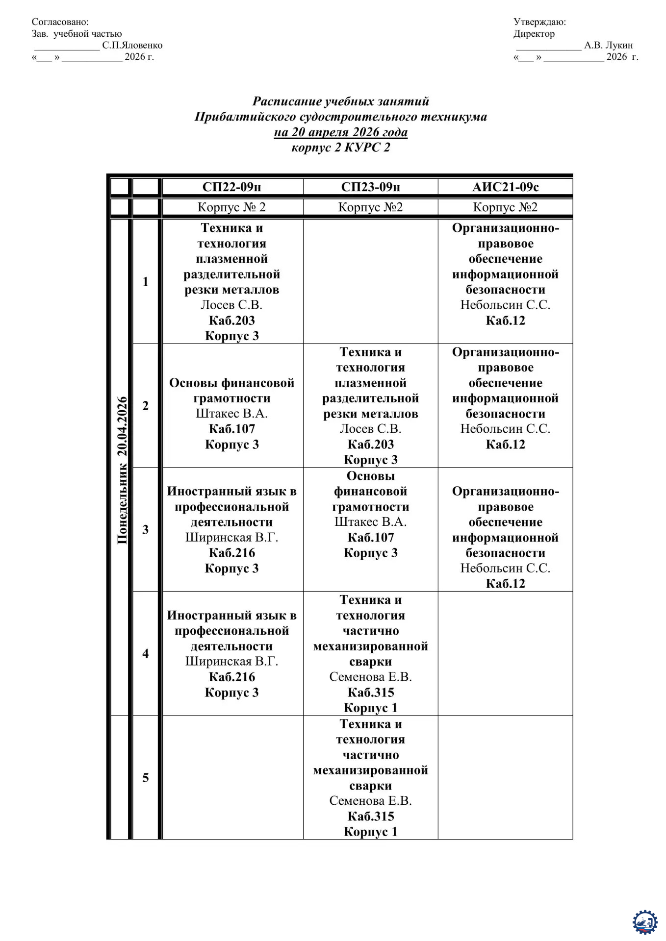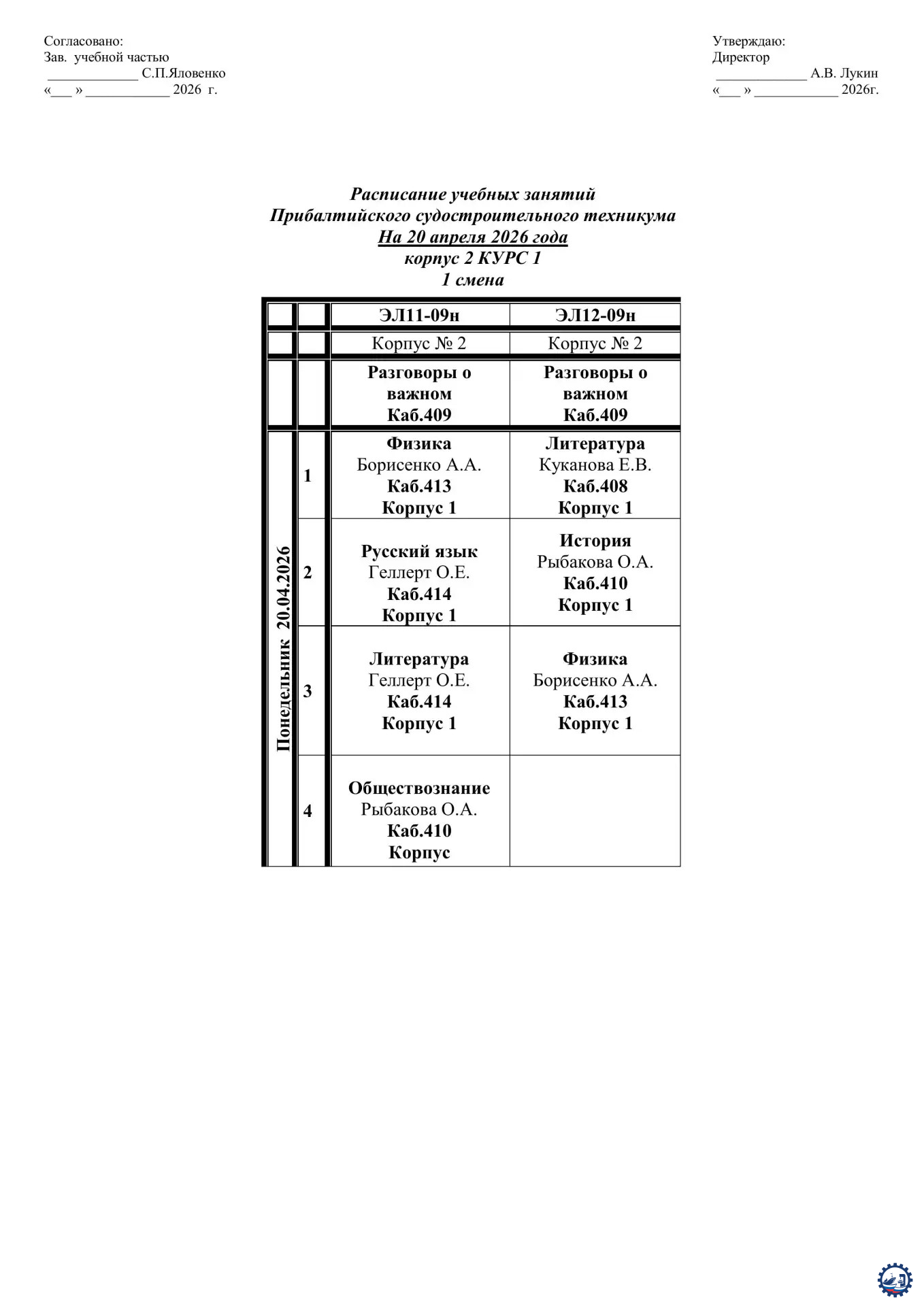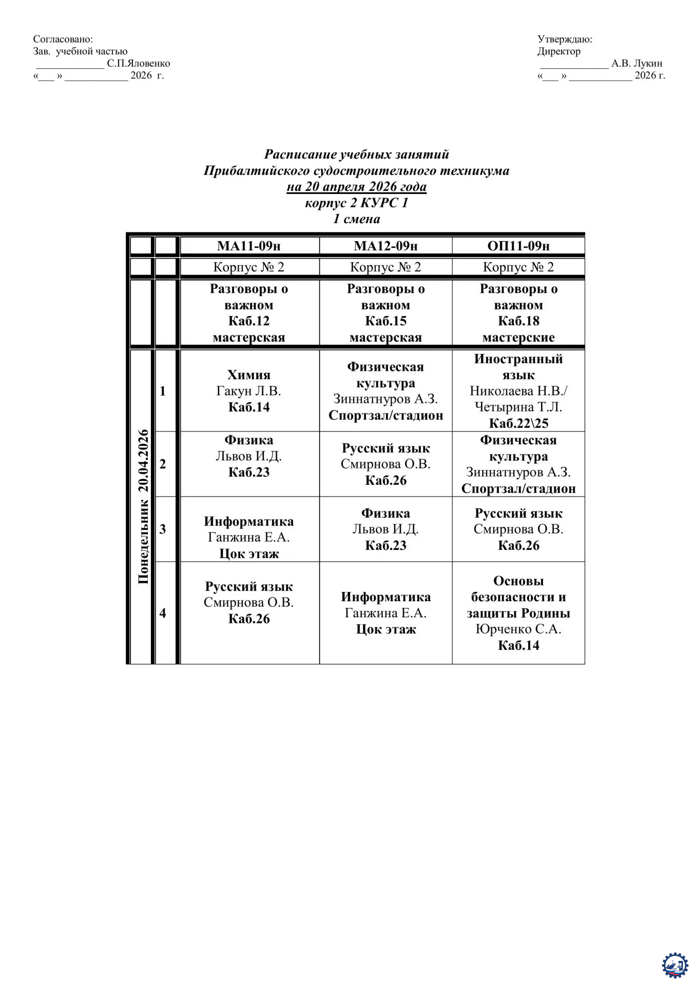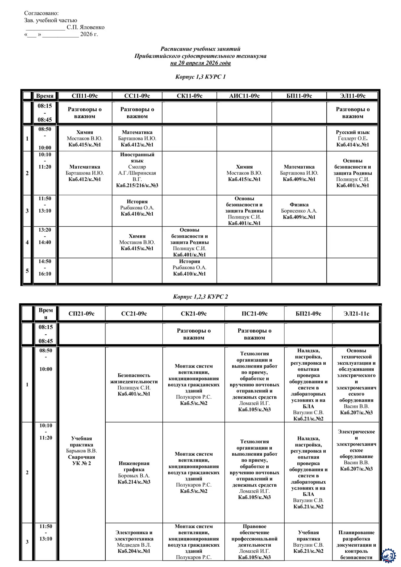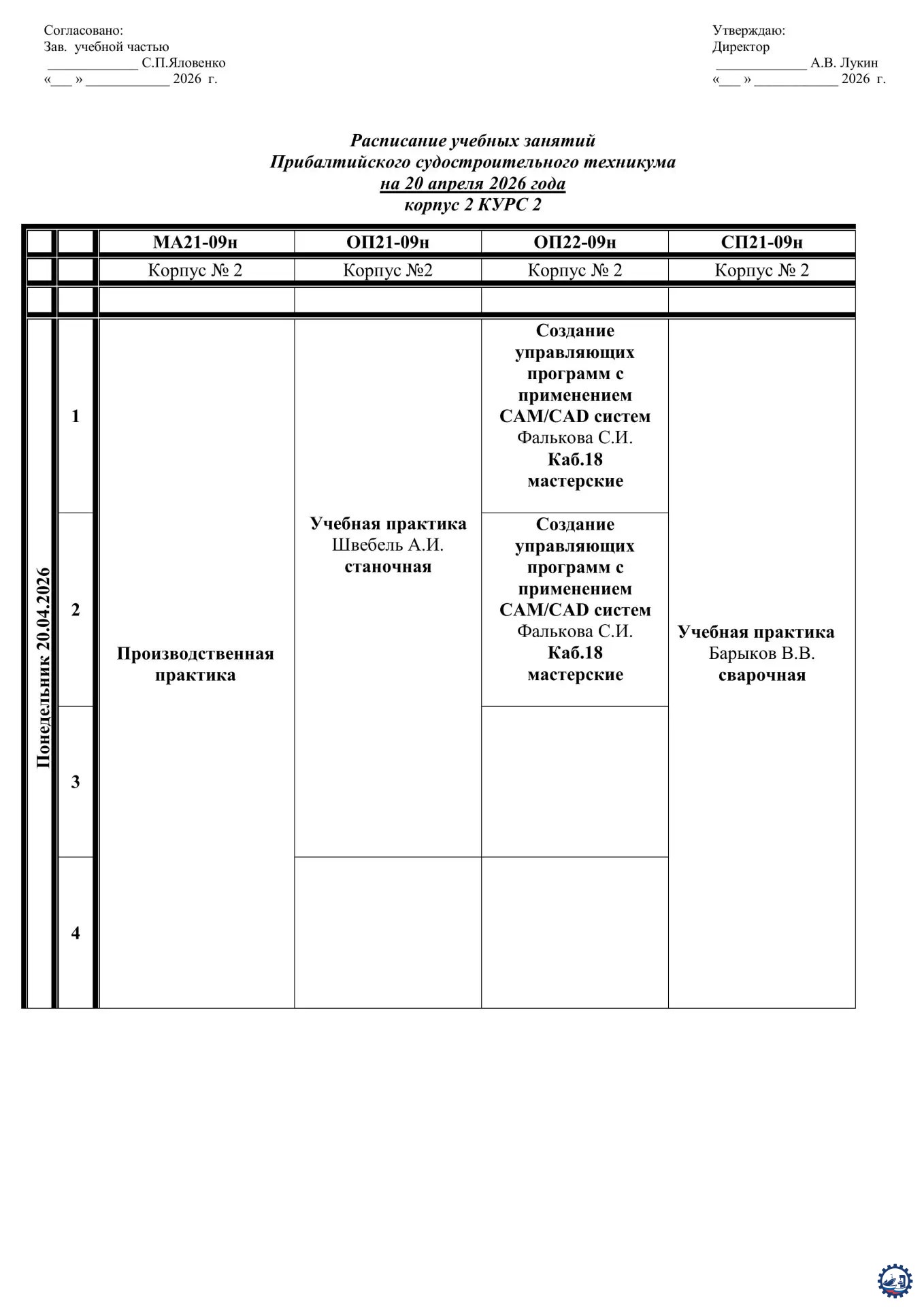 🌱 Расписание занятий на 20.04.26 Опубликовал: Manager, Сегодня, 14:01, Расписание занятий / Расписание занятий (очка), 22, 0 0 1 2 3 4 5