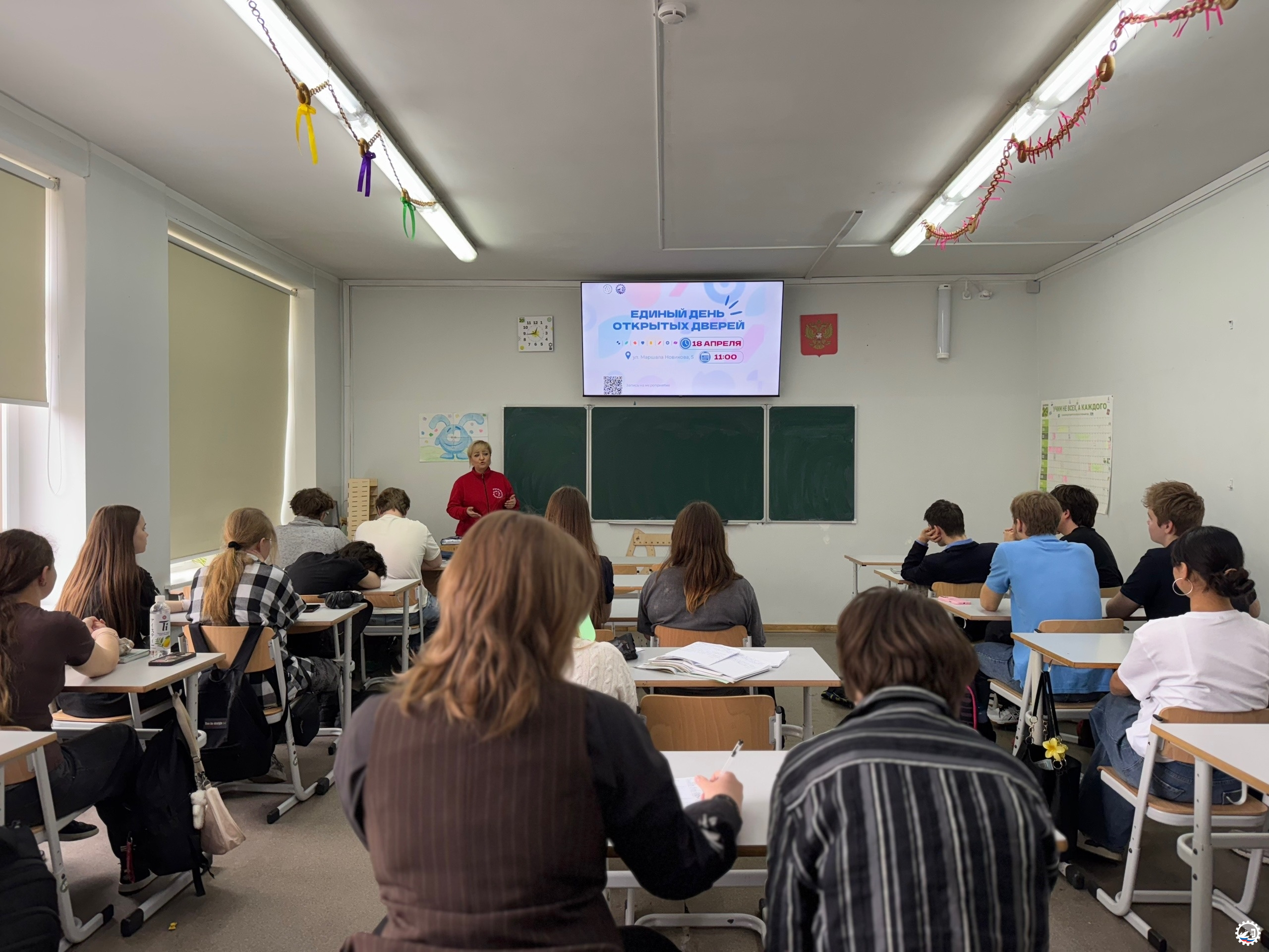 Для выпускников 9‑х классов МАОУ СОШ № 28 г. Калининграда прошёл классный час «Профессионалитет: ты в хорошей компании». Мероприятие организовали амбассадоры ФП «Профессионалитет» национального проекта «Молодёжь и дети» в рамках подготовки к Единому дню открытых дверей.