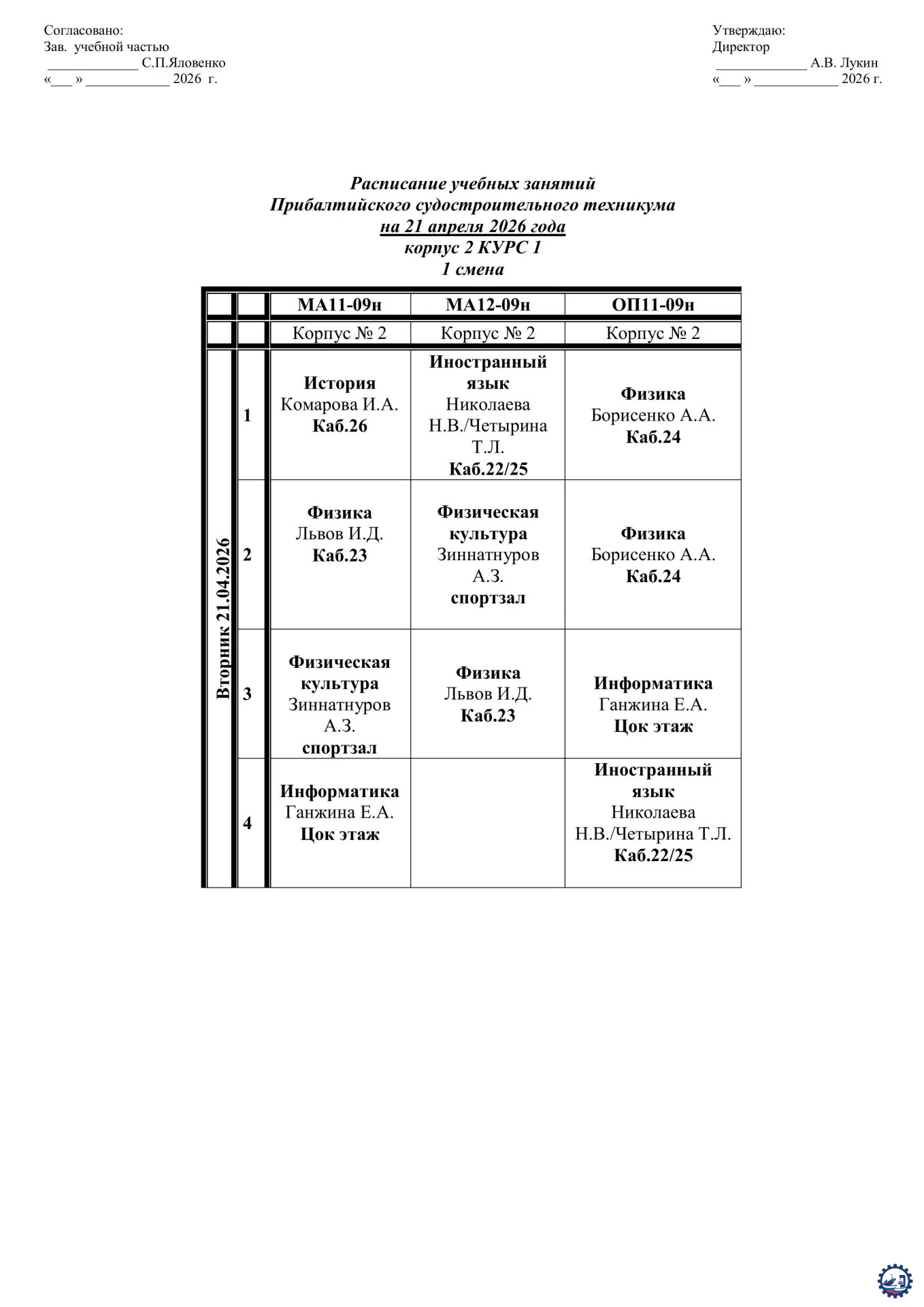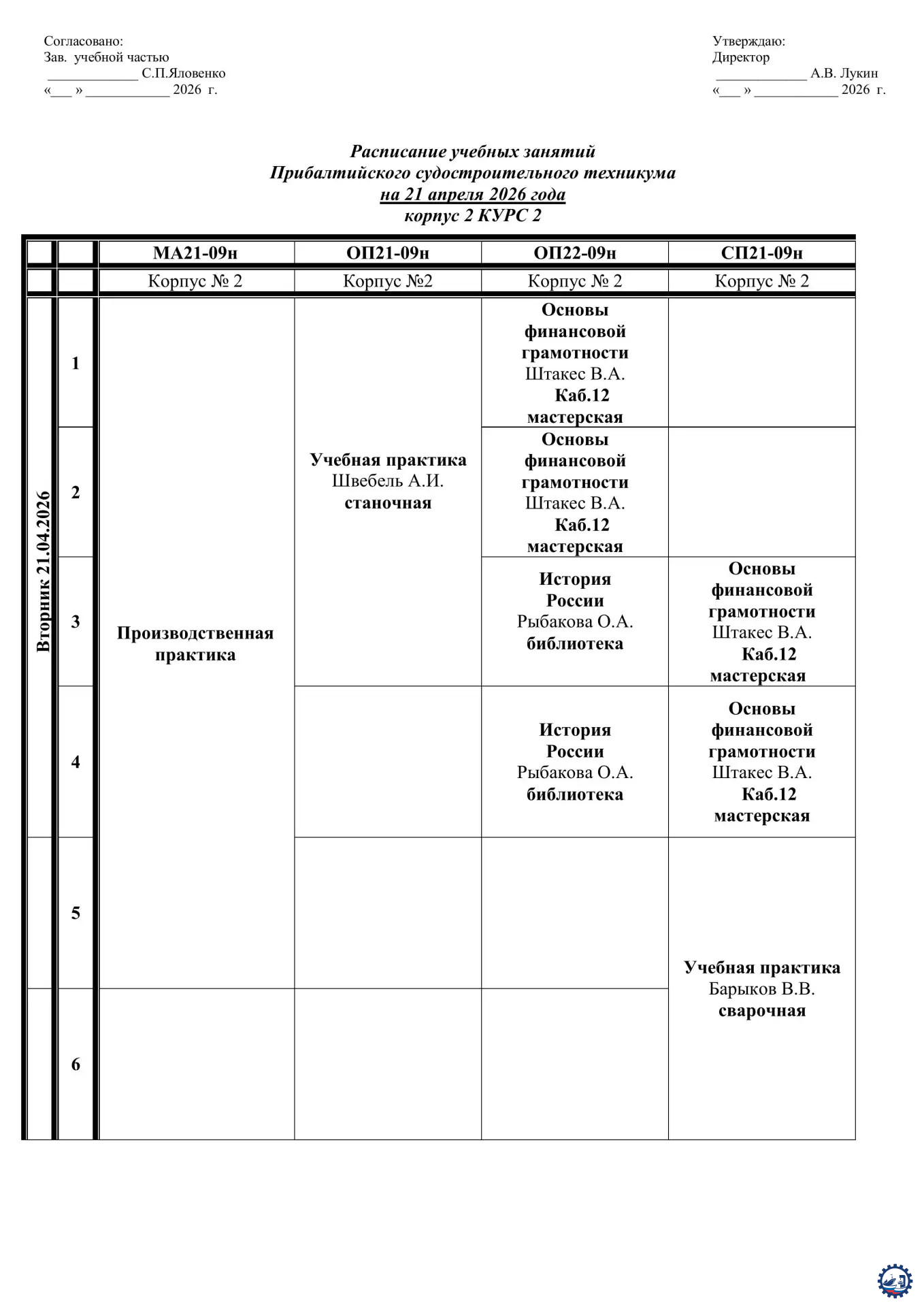 🌱 Расписание занятий на 21.04.26 Опубликовал: Manager, 20-04-2026, 14:37, Расписание занятий / Расписание занятий (очка), 154, 0 0 1 2 3 4 5