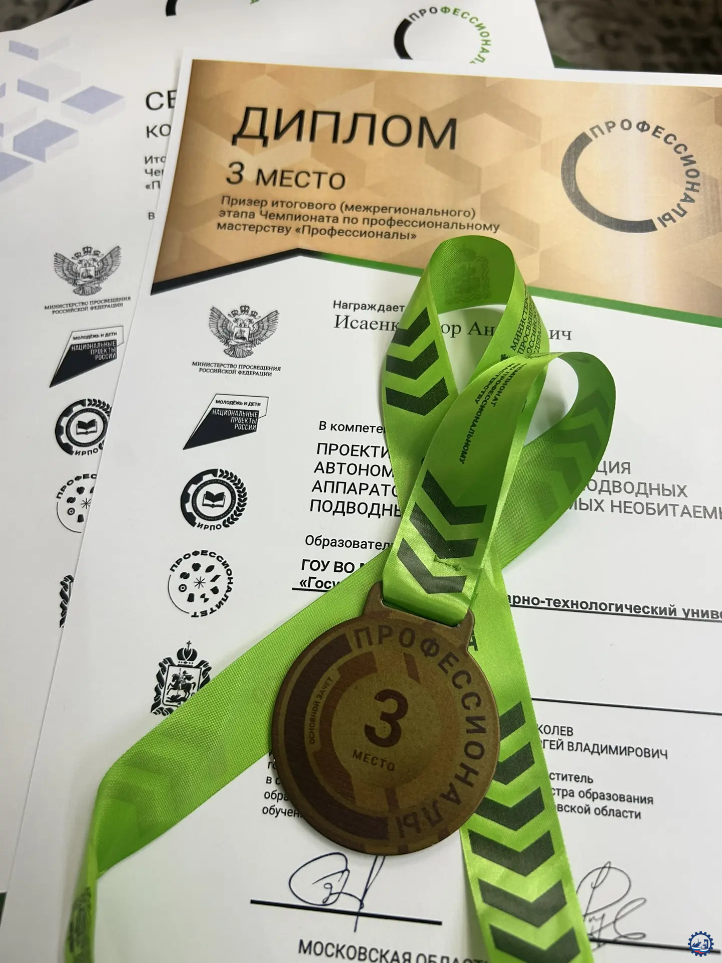 Исаенко Егор, компетенция «Проектирование и эксплуатация автономных необитаемых подводных аппаратов / телеуправляемых необитаемых подводных аппаратов» - 3 место