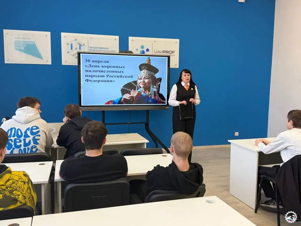 В преддверии Дня коренных малочисленных народов Российской Федерации, советник директора Куканова Екатерина Валерьевна со студентами первых курсов провела интересный урок-беседу «Зачем сохранять и изучать традиции и образ жизни, хозяйственную деятельность, промыслы и самобытную культуры коренных малочисленных народов» и «Что мы знаем о коренных малочисленных народах, которые стали участниками и героями в Великую Отечественную войну».