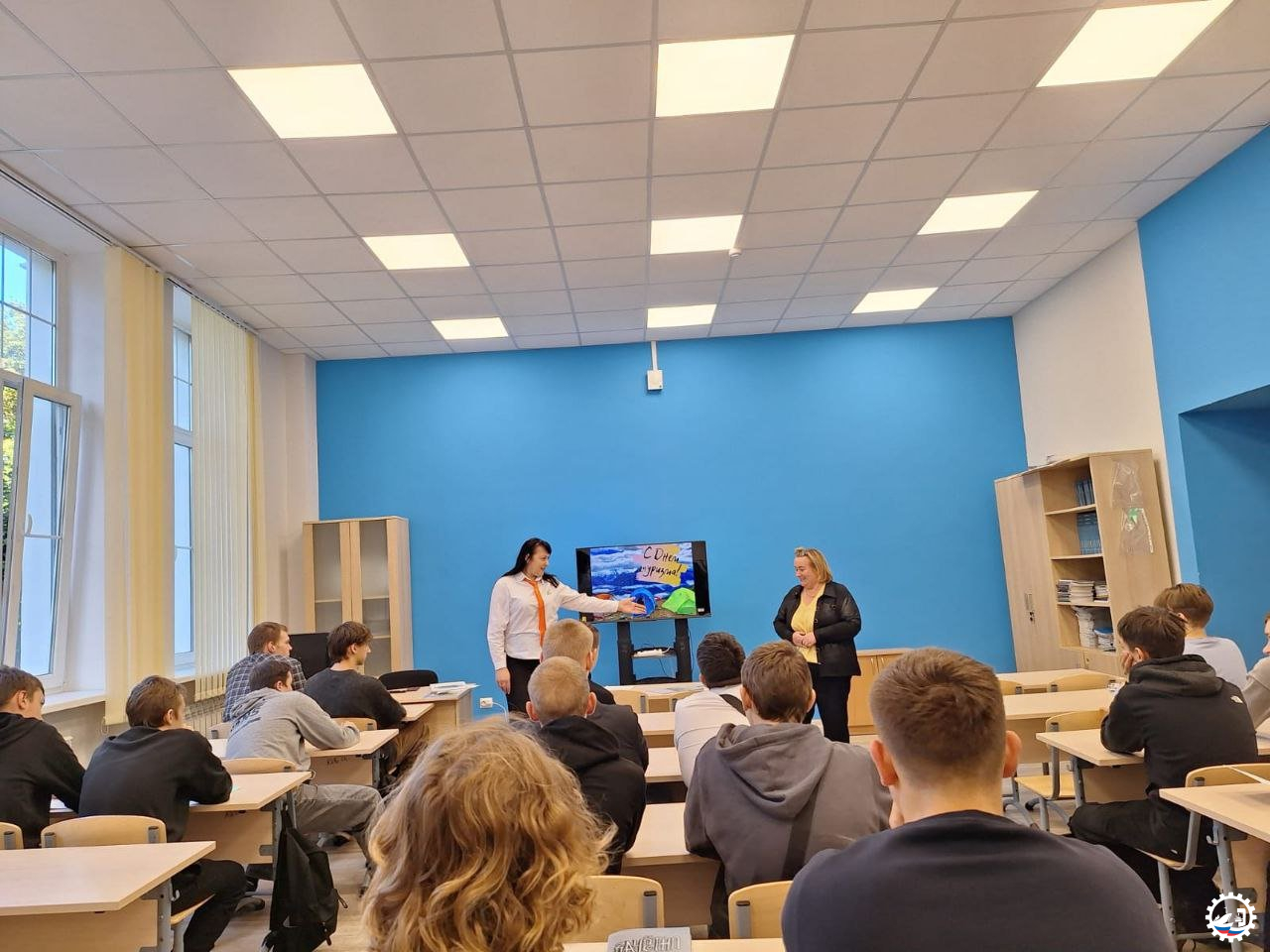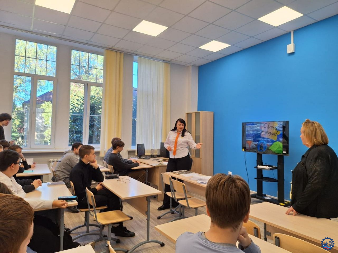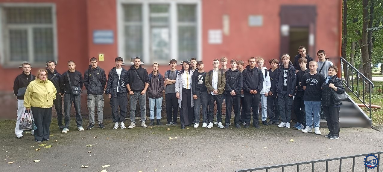 📍 Маршрут проходил по улице Маршала Новикова, а началом стала территория Прибалтийского судостроительного техникума. Студенты обратили внимание на мемориальную доску на фасаде здания: