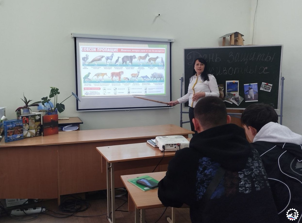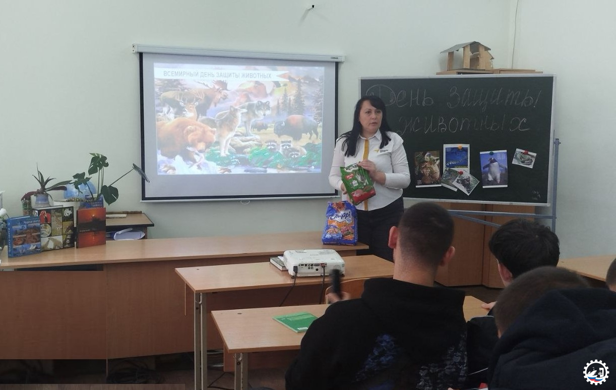 Советником директора был проведен урок о «Всемирном дне защиты животных», где студенты говорили об ответственности, которую мы несем за домашних и диких животных, о правилах ухода за животными, о том, откуда появляются бездомные животные и как им можно помочь.