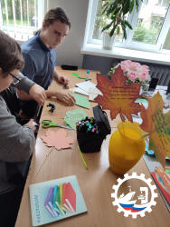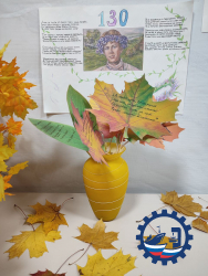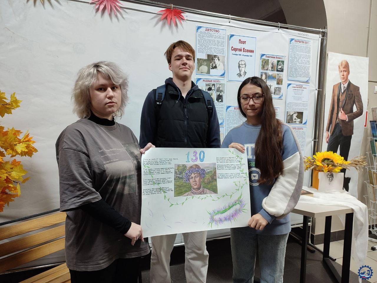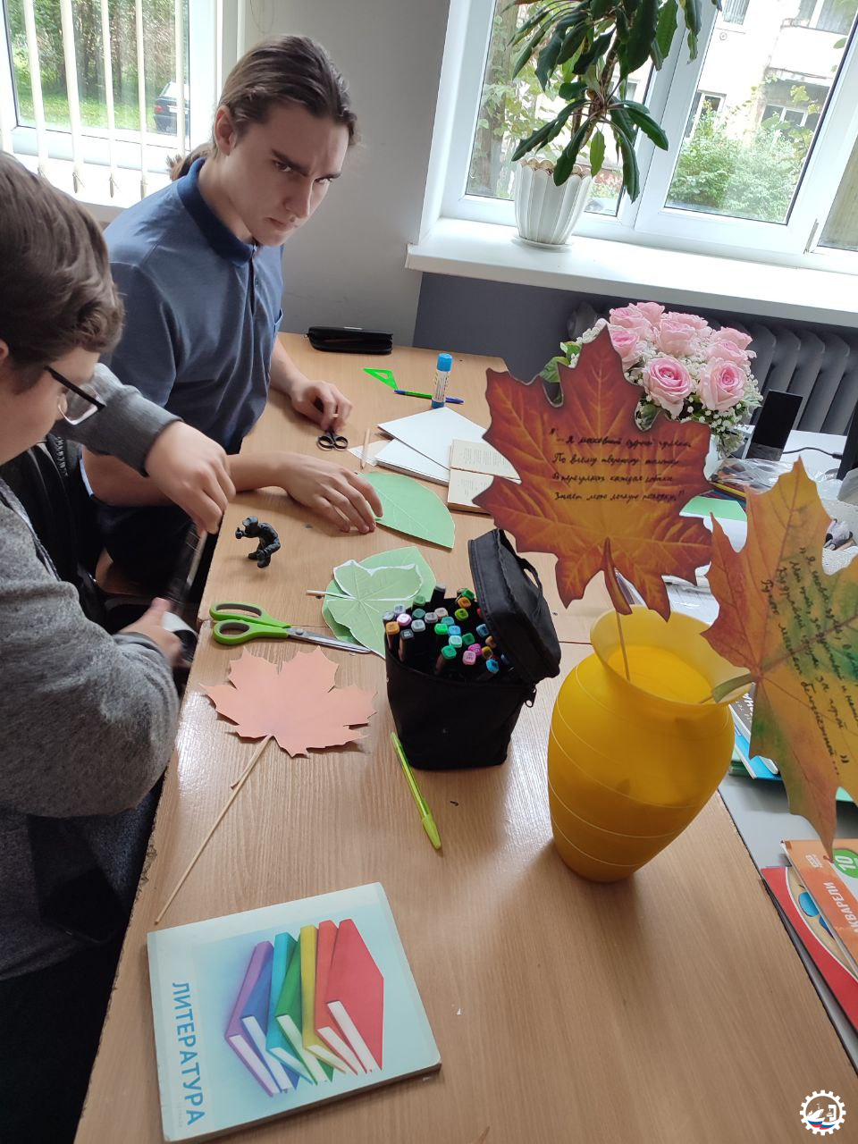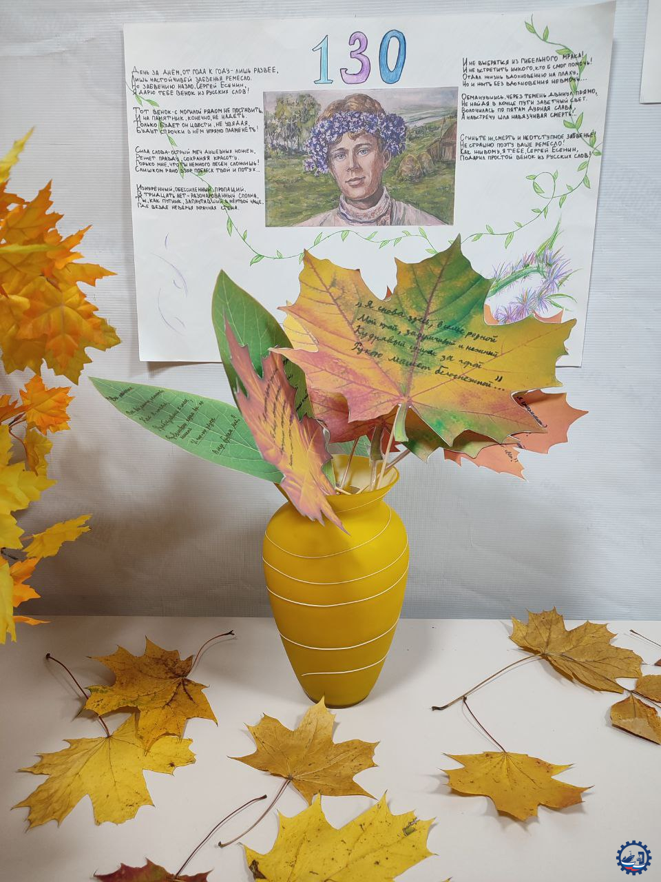 А мальчишки из гр. СК11-09с — Брисюк Т. и Лысенко С. — придумали и изготовили композицию из листьев клена 🌿 (это любимое дерево Есенина), на которых написали знаменитые строчки из стихов поэта.