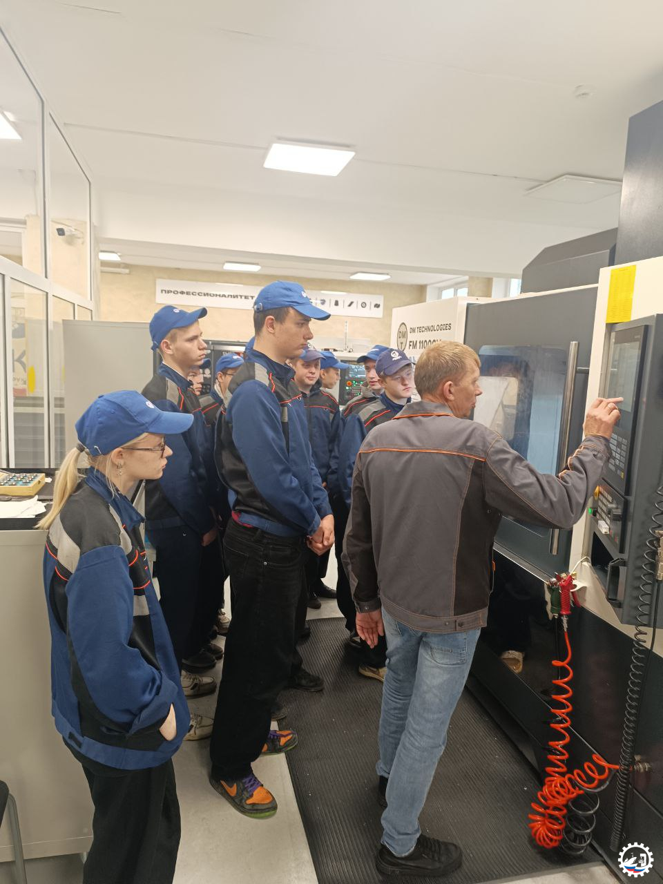 Ребята посетили мастерскую станочников, оснащённую в рамках ФП «Профессионалитет» современным оборудованием — универсальными станками и станками с числовым программным управлением (ЧПУ).