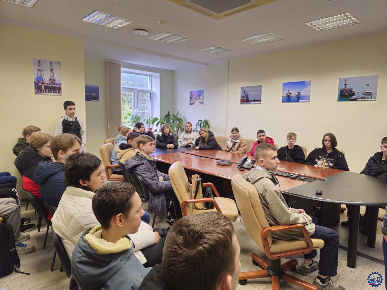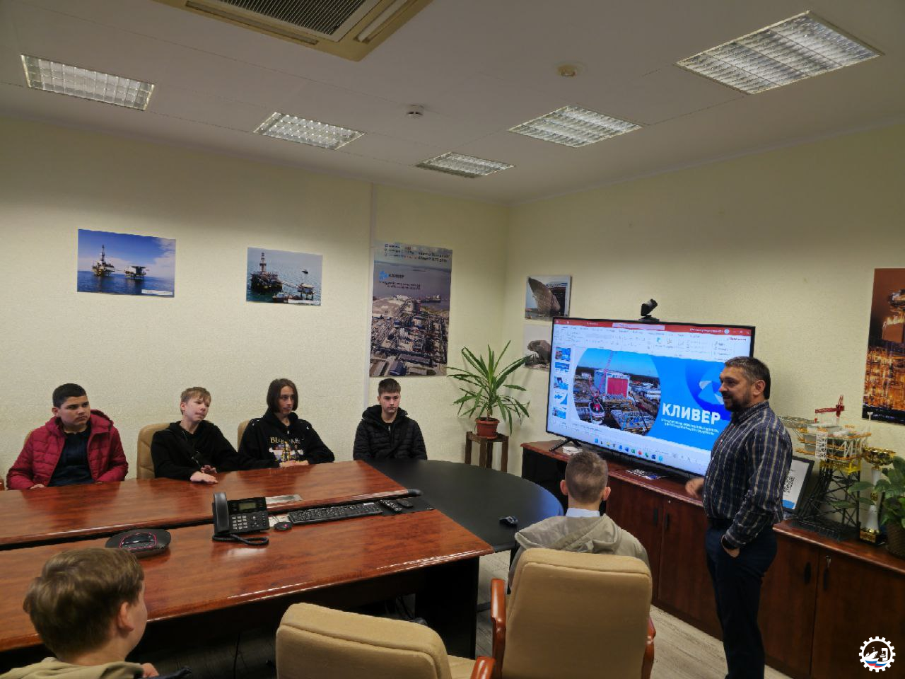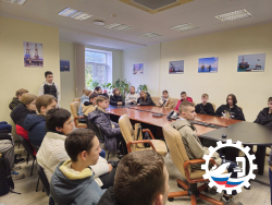 👨🏭 Руководитель проектного отдела Андрей Михайлович Кузнецов познакомил ребят с основными направлениями деятельности комплекса, рассказал историю добычи нефти в Калининградской области и показал, как разрабатываются и внедряются инновационные решения в нефтегазовой отрасли и судостроении.