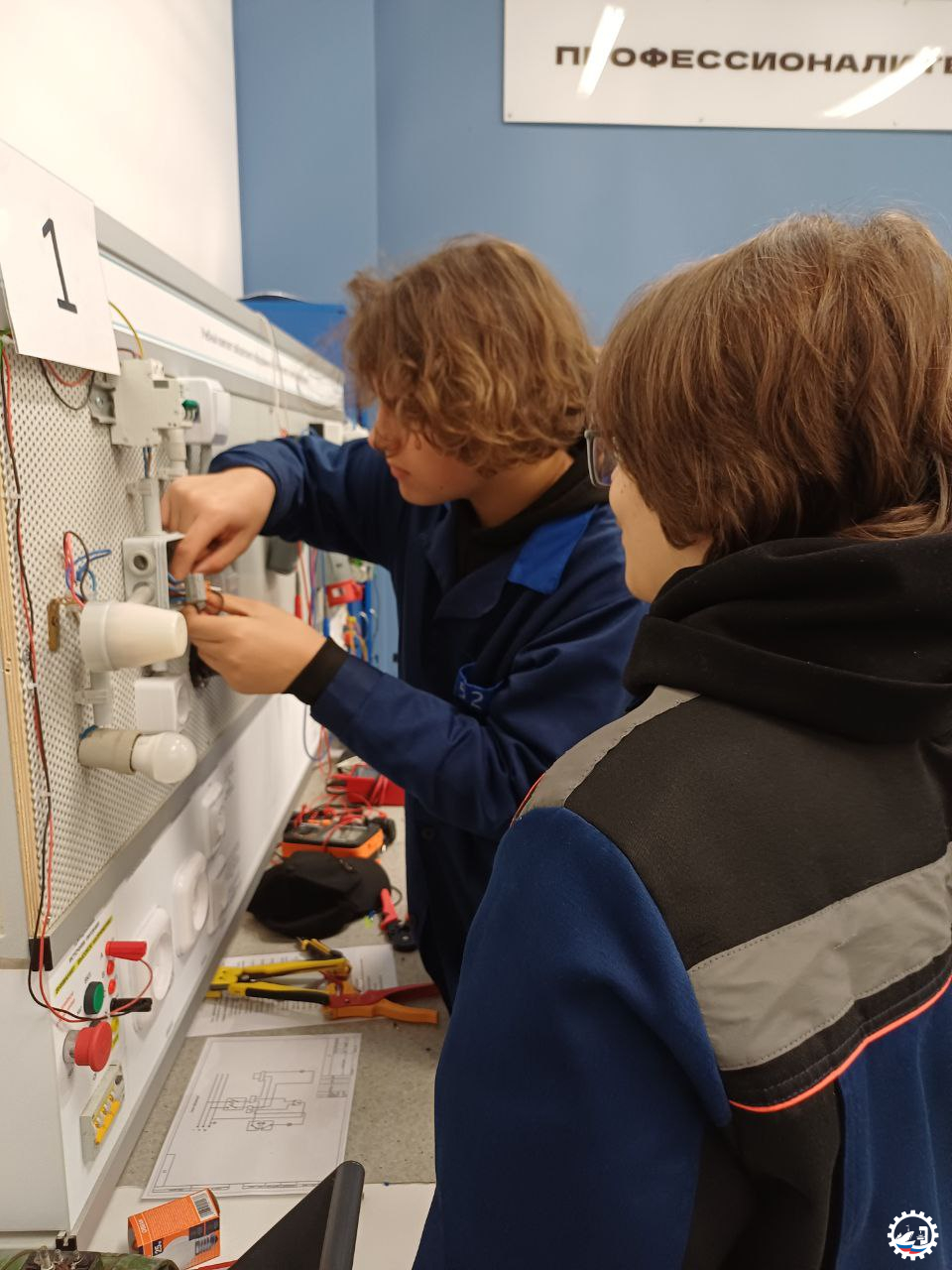 ⚡️ На электромонтажных стендах собирали электрическую схему освещения кают-компании корабля.