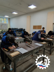 🔧 В слесарно-механической мастерской мальчишки изготавливали нагубник для слесарных тисков из листового металла.