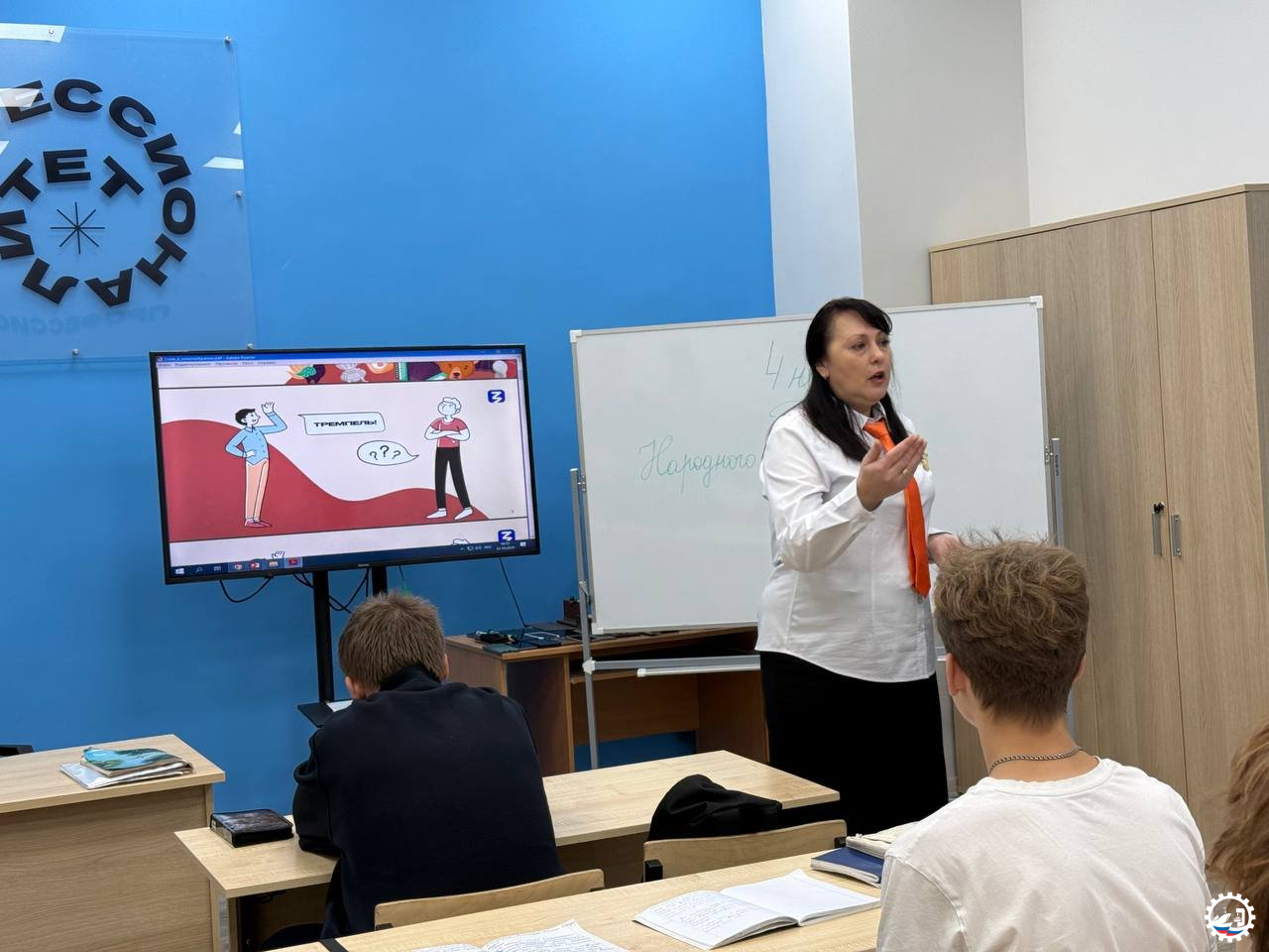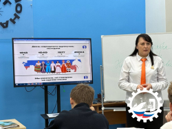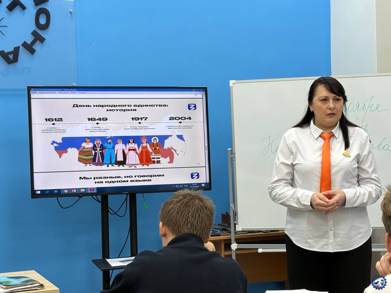 В преддверии Дня народного единства, в рамках сотрудничества с Российским обществом «Знание», советник директора Куканова Е.В. провела со студентами 1 курса лекцию «Сила – в многообразии: язык и традиции разных народов России».