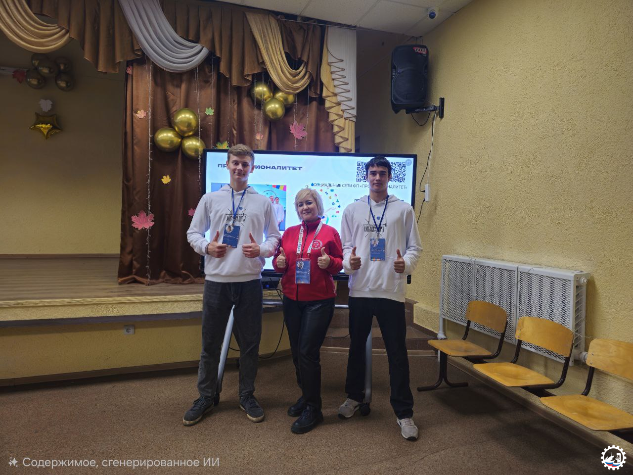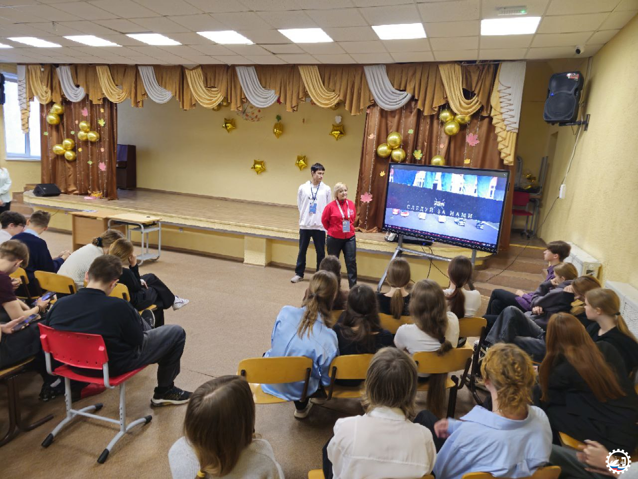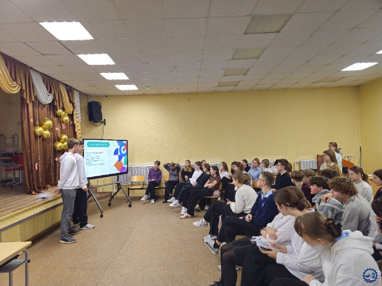Амбассадоры проекта — Арсен Наурзбаев и Ярослав Данилин — провели для учащихся 8–9 классов познавательную встречу, посвящённую федеральному проекту «Профессионалитет» национального проекта «Молодежь и дети».