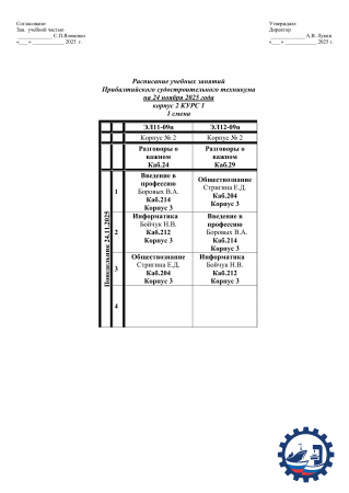 📌 Расписание занятий на 24.11.25 Опубликовал: Manager, 21-11-2025, 12:09, Расписание занятий / Расписание занятий (очка), 263, 0 Скачать файл: 2-korpus-raspisanie-urokov-na-24_11_2025g.pdf [358,45 Kb] (cкачиваний: 3) Посмотреть онлайн файл: 2-korpus-raspisanie-urokov-na-24_11_2025g.pdf Скачать файл: raspisanie-ppkrs-24_11_25.pdf [301,5 Kb] (cкачиваний: 5) Посмотреть онлайн файл: raspisanie-ppkrs-24_11_25.pdf Скачать файл: raspisanie-ppssz-24_11_25.pdf [347,29 Kb] (cкачиваний: 7) Посмотреть онлайн файл: raspisanie-ppssz-24_11_25.pdf 0 1 2 3 4 5