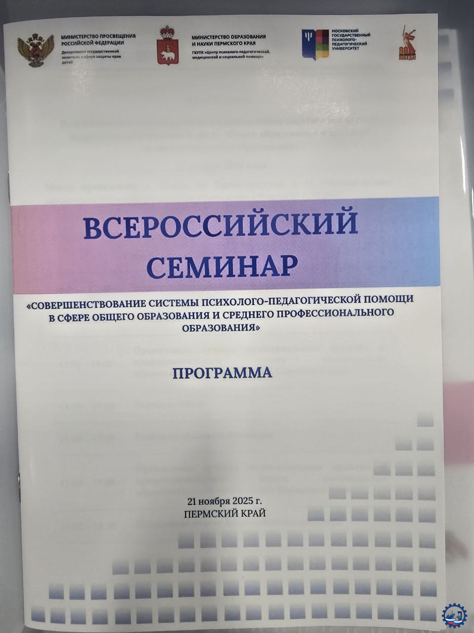 📅 Сегодня, 21 ноября, в преддверии Дня психолога в городе Пермь проходит Всероссийский семинар "Совершенствование системы психолого-педагогической помощи в сфере общего образования и среднего профессионального образования".