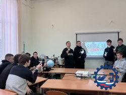 2 февраля 1943 года состоялась Сталинградская битва — одно из самых крупных и решающих событий в Великой Отечественной войне. 200 дней стойкости и мужества. Великая победа советского народа. Разговор об этом величайшем событии состоялся на тематическом занятии «Время для памяти». Студенты группы СП 13-09н вместе с преподавателем географии Лебедь Т. В. прониклись тем, какой ценой досталась эта победа, когда бой шёл за каждый дом и каждую улицу.