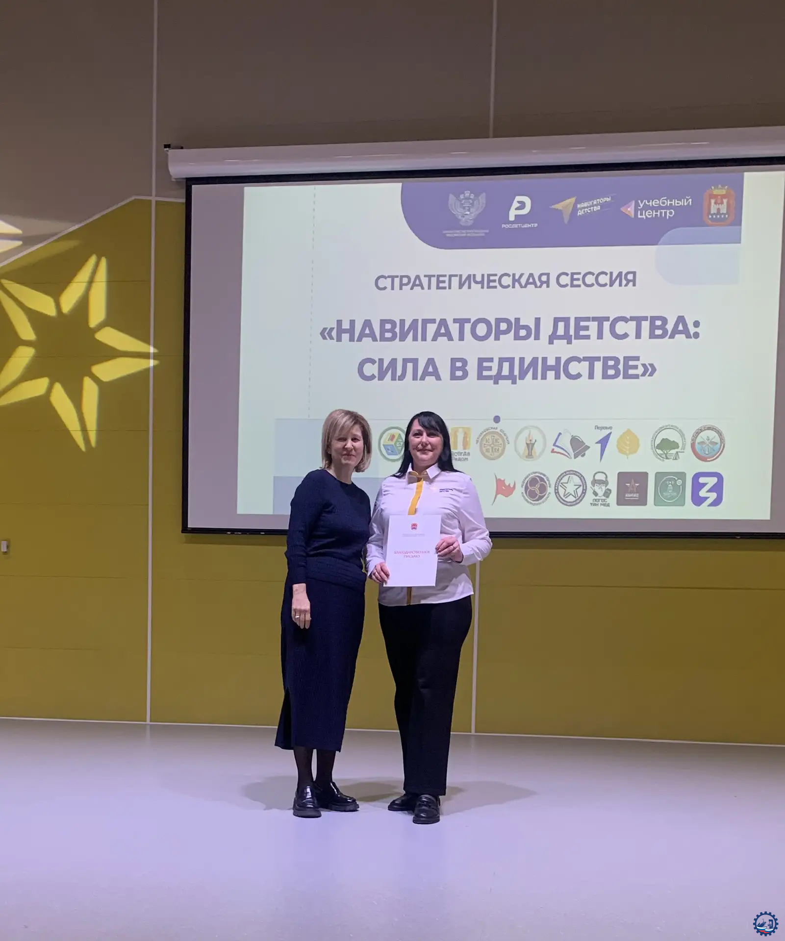 На торжественной церемонии открытия стратегической сессии «НАВИГАТОРЫ ДЕТСТВА: СИЛА В ЕДИНСТВЕ», которая состоялась 13 февраля 2026 года на площадке школы № 57, заслуженную награду Благодарственное письмо от Министерства образования Калининградской области получила Советник директора по воспитанию и взаимодействую с детскими общественными организациями Какунова Екатерина Валерьевна.